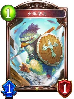企鹅卫兵能在第1回合登场,其制造的坚韧之盾则能填补2费曲线(为企鹅提供Buff,使其白吃对手1/1的话,相当于使用了1张弱化版的坚盾战阵)。