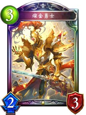 灿金还能通过进化召唤骑士王的威望,提供额外伤害与协作数,适合搭配企鹅、生还的突击兵等1费随从,以及圣剑之光的小队长、激奏荣胜剑士等能召唤1费随从的组件。
