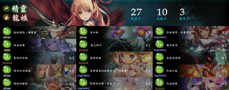 这套卡组和下面即将介绍的连击妖均来自主播Dayan。他是极致的精灵单推人,在其他所有职业0胜的情况下精灵累计胜场达到了2000以上,构筑和游戏理解上也有亮眼之处。