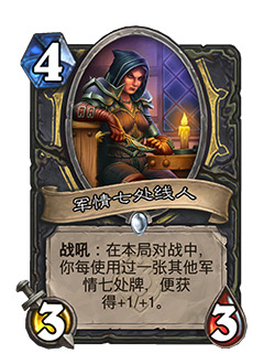 描述改为“战吼:在本局对战中,你每另使用过一张军情七处牌,便获得+1/+1。”