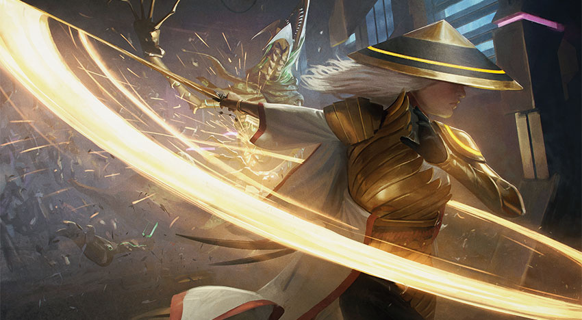 魁渡的剑在附近反复挥砍,抵抗着金吉塔厦僱佣爪牙的袭击。多美代盘旋在远处,展开卷轴将泰兹瑞暂时固定在一种麻痺状态中。