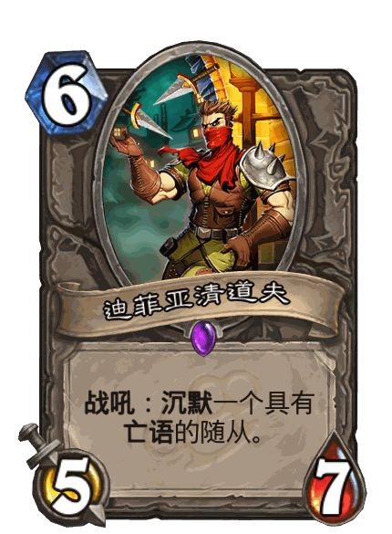 - 从迪菲亚兄弟会的介绍中我们可以看出,这个组织是以被拖欠工资的石匠工会为基础,吸收了大量的盗贼、强盗、海盗而形成的,迪菲亚海盗只是其中的一个分支,迪菲亚兄弟会最主要的组成部分还是盗贼,所以炉石早期迪菲亚的卡包括大范本身都没有海盗词缀。迪菲亚头目 迪菲亚清道夫