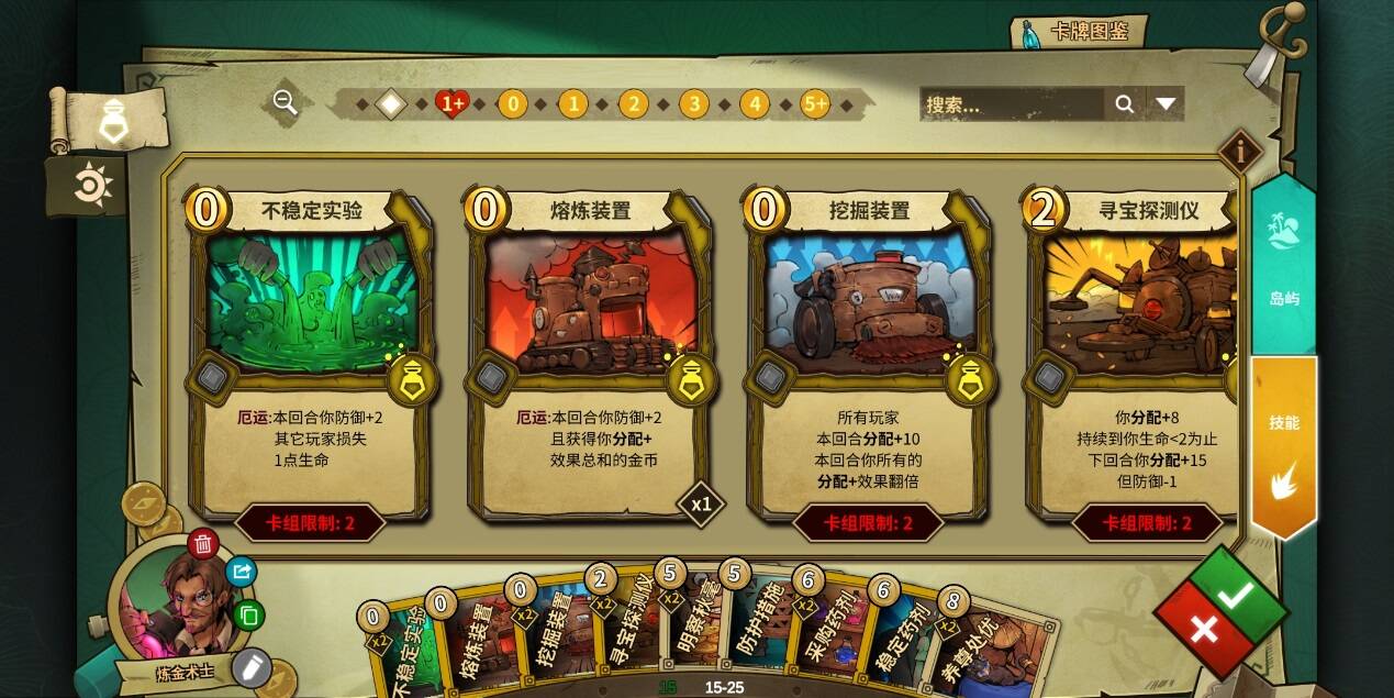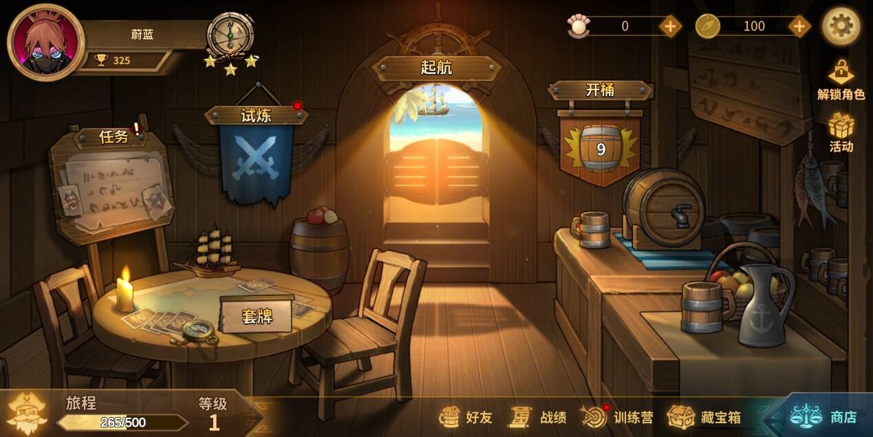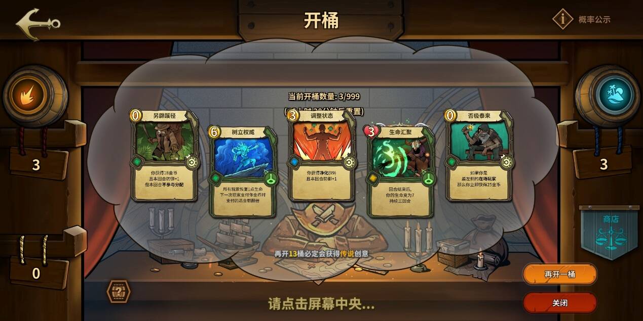 前期酒桶(即卡包,分岛屿和技能两种)开完卡之后看了一下卡牌,产金币的卡明显比较完整,所以前期大部分玩家应该都是走产金币的路线,要去打其他玩家的血量应该会比较困难,可以等卡牌完善了再进行尝试。