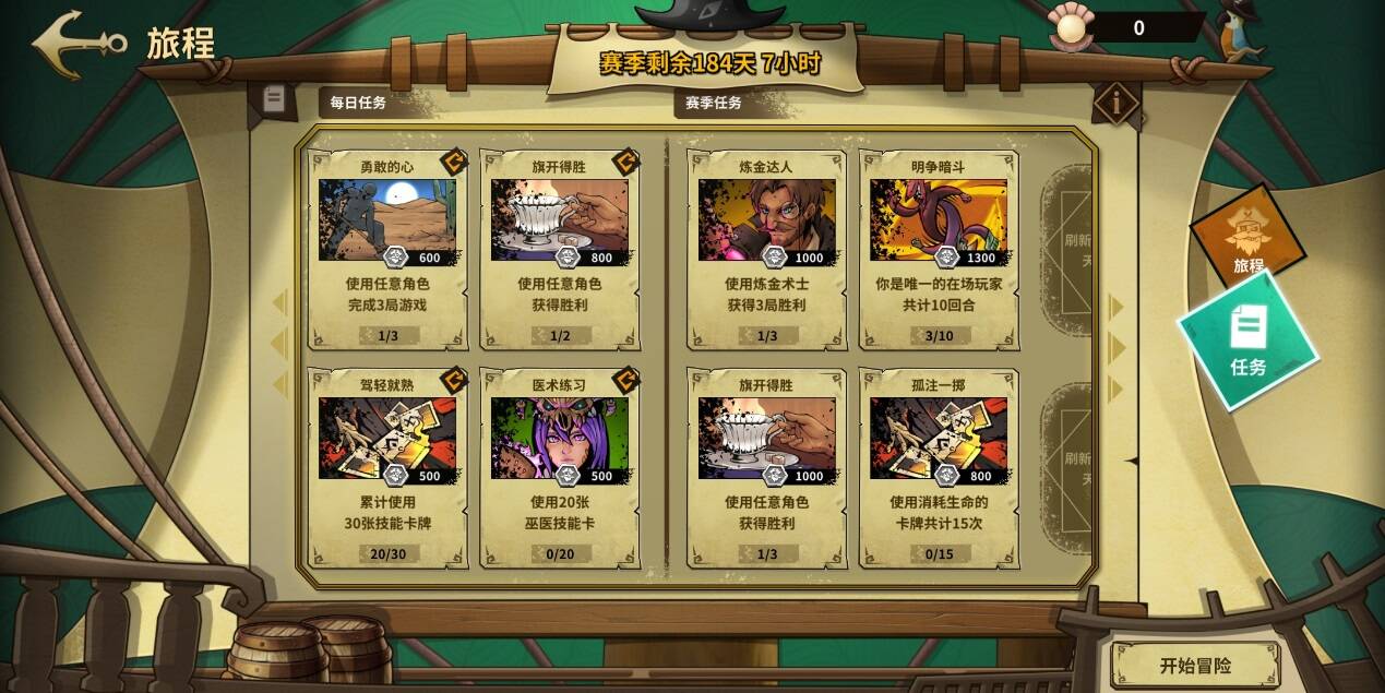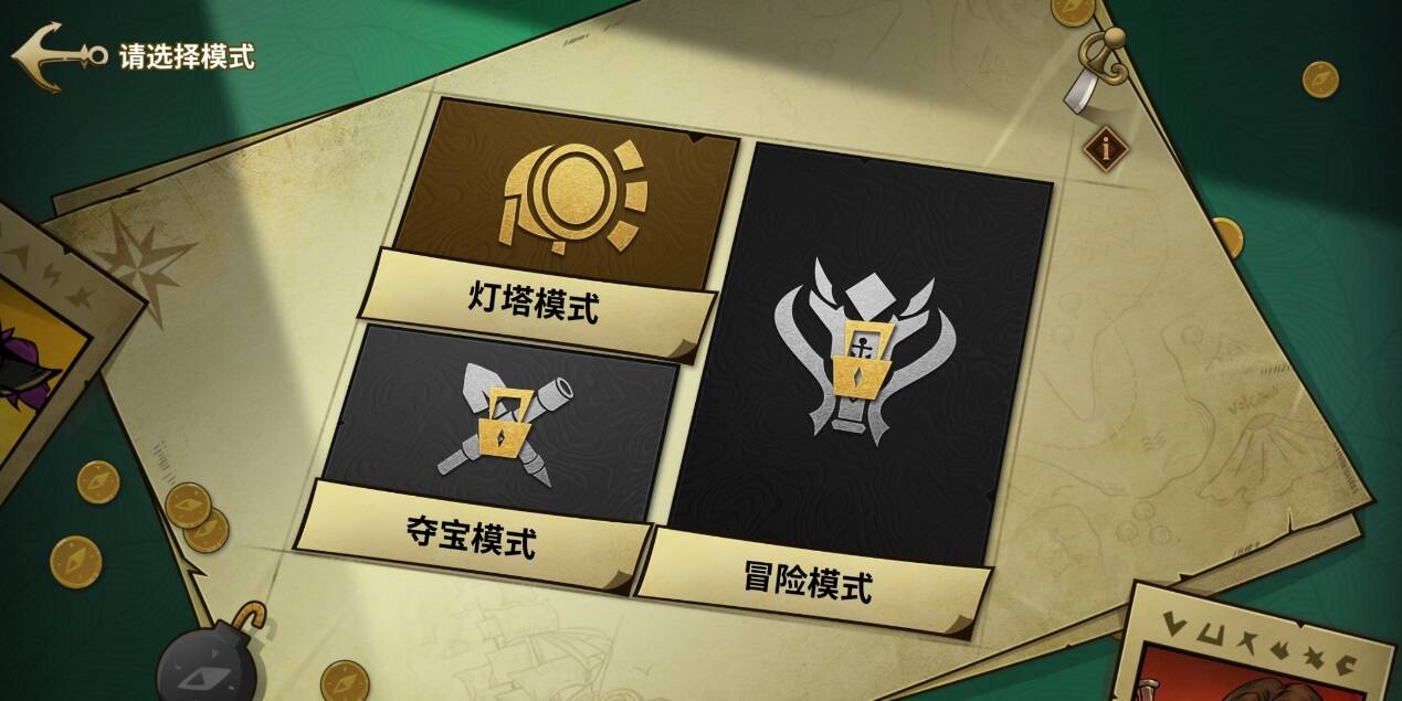 游戏模式,灯塔模式思考时间32秒,冒险模式思考时间16秒,夺宝模式可以将两个角色的卡牌进行混搭。