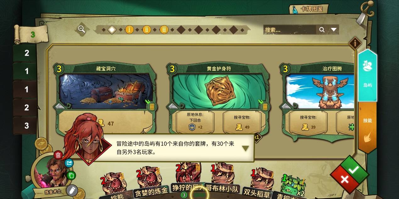 玩到这里基本猜到技能卡牌肯定是玩家自己组的(每副套牌15~25张),结果发现岛屿也是玩家自己携带的,这感觉好惊喜,每个玩家带10个岛屿,外加系统的8个黑色岛屿。