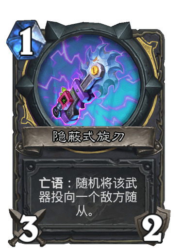 其实隐蔽式旋刃的亡语就是简单的“对一个敌方随从造成该武器攻击力的伤害”。不知道为什么要写的这么花里胡哨(