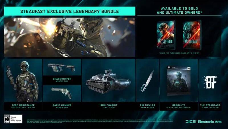 在《战地风云2042》S1赛季到来之前,为了感谢无邦者们的耐心等待,现在《战地风云2042》在游戏内为我们发放了一个“坚定不移”专属传奇捆绑包。无论你购入的游戏版本是黄金版还是终极版,你都可以登入游戏,免费获得这个独家捆绑包,其中内含专家韦伯斯特·麦凯“零阻力”、武器K30“蚱蜢”、载具博尔特“钢铁战场”等限定皮肤和玩家卡背景图标。