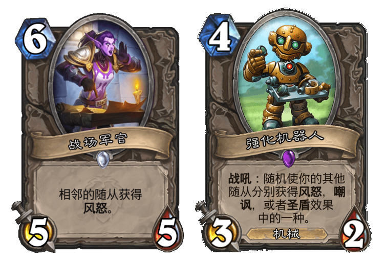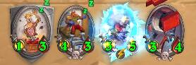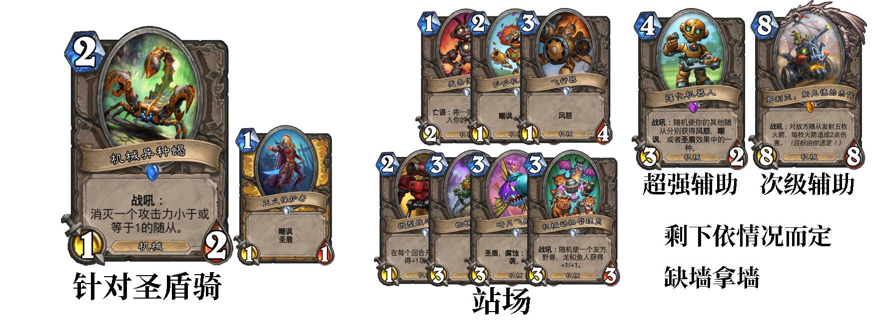 祈祷他们能被鼓舞减费抽到,当然没也减费也无伤大雅,具有风怒的随从总是好的,强化机器人打圣盾骑,元素萨有奇效