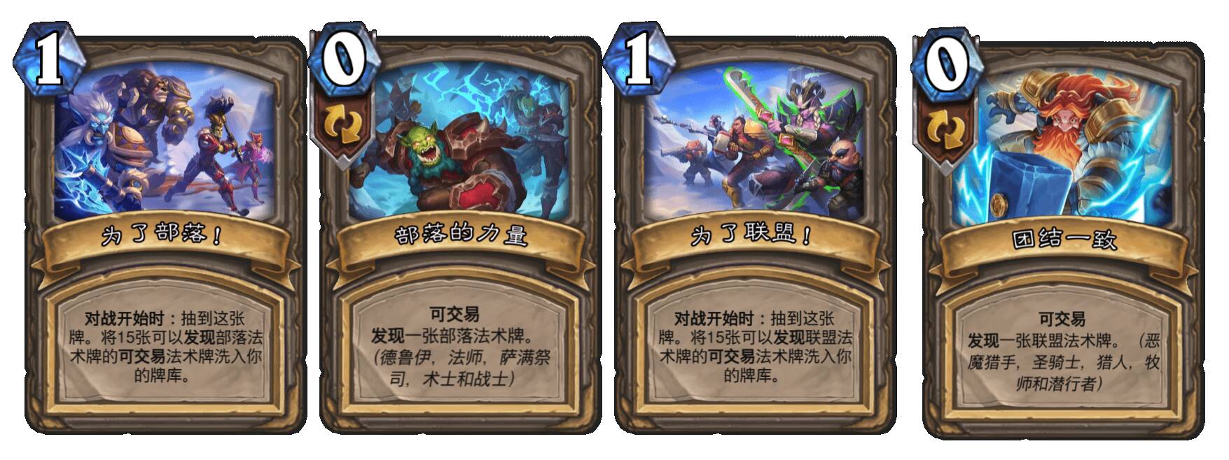 中期(4-7费)爆发组件,一费准时开为了联盟/部落,配合鼓舞过三张,经常过到2张0费发现,全体+2/+2