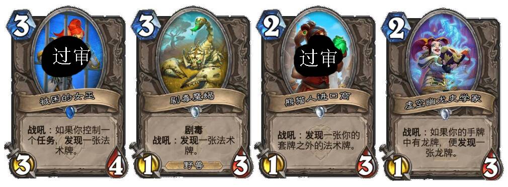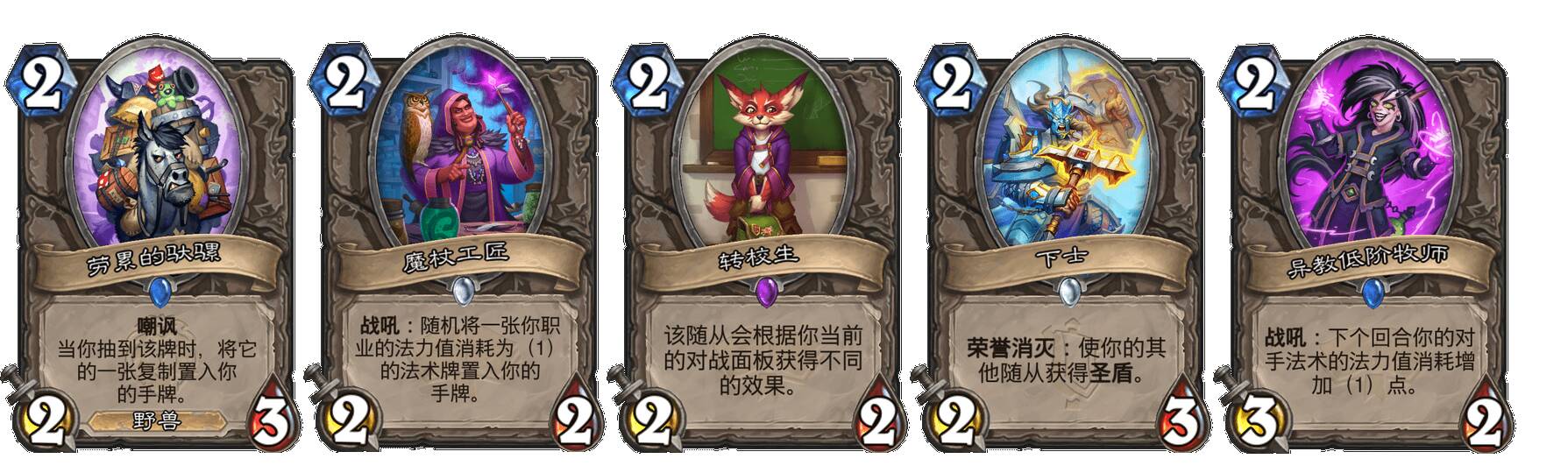 驮骡挡敌方随从,魔杖工匠纯粹是为了配合剧毒摩羯和熊猫人进口商诱导奔赴前线,转校生和下士博上限,上限几乎可忽略不记,低价牧师打法系,但会歪到制造麻烦,制造麻烦不是说很差,就是费用有点高,看你能不能接受(这边提一嘴,5费赛布其实也完全可以带)