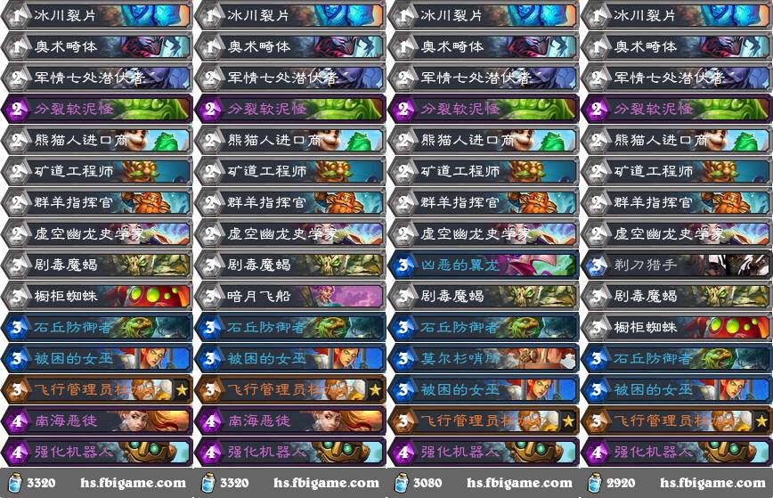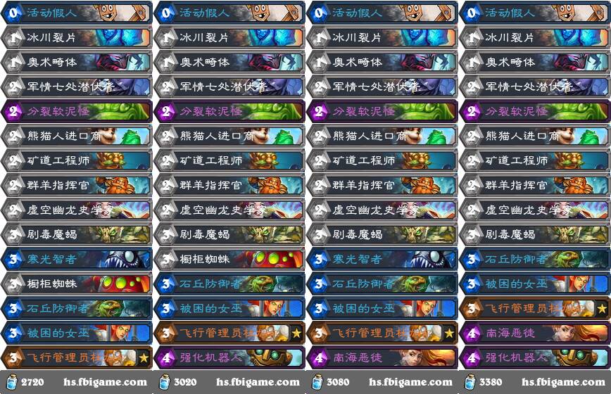 1和2卡组出宣称概率比3和4高一丢丢,2是暗月飞船 ,3是凶恶的翼龙, 2和3没有橱柜蜘蛛