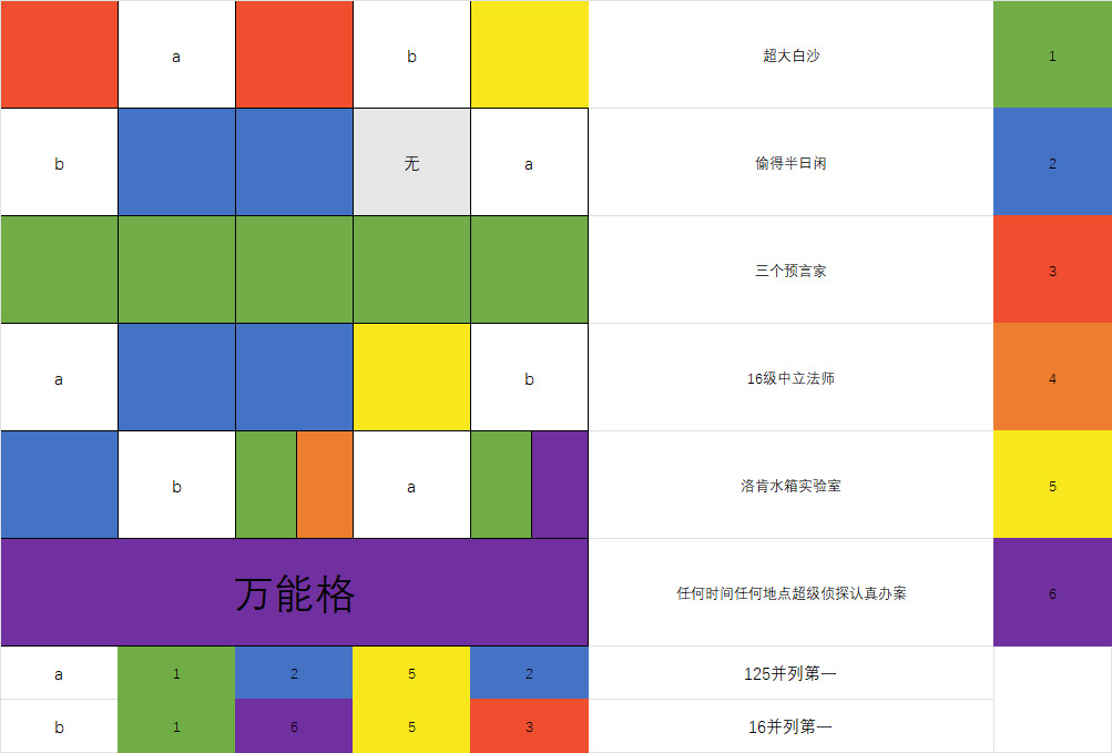 本次新规则:万能格:占领该格的队伍可以任选一个格子,与其原来的拥有者共同拥有它。