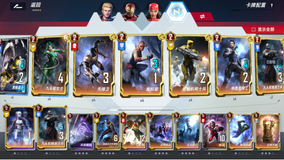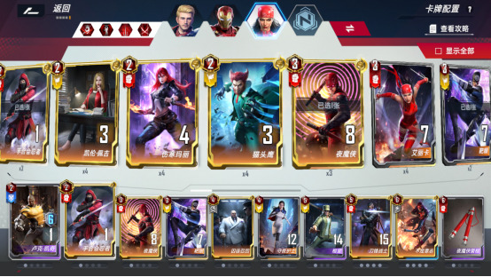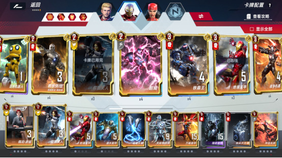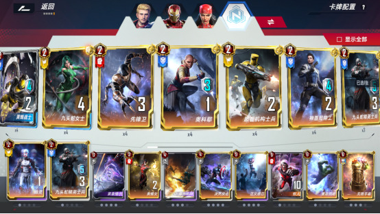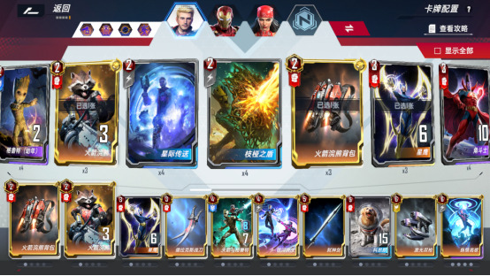 1如果你前两个回合赢了,那么酌情拿下一些非锁定卡后升本就好,这里要注意,漫威骑士的卡一定要拿,过滤掉!