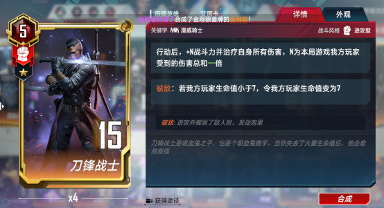 刀锋战士这张卡很有趣,本卡组是围绕刀锋战士所组建的卡组,想让刀锋战士变强,有两种方式,第一种是增加刀锋战士的原始身材,本卡组携带了万能刺杀体系,加上艾丽卡的六费卡不屈意志,可以让刀锋战士变得很大。第二种是增加刀锋战士的成长身材,也就是受到尽可能多的伤害,本卡组携带了血魔体系三件套和满编缩小,决死,尽可能让我们挨最毒的打(bushi),关于辅助位的选择,经过大量测试以后个人更喜欢用星爵作为辅助,不管是纵情高歌的泛用性还是携手破敌的强大,都让这套卡更具有威胁。