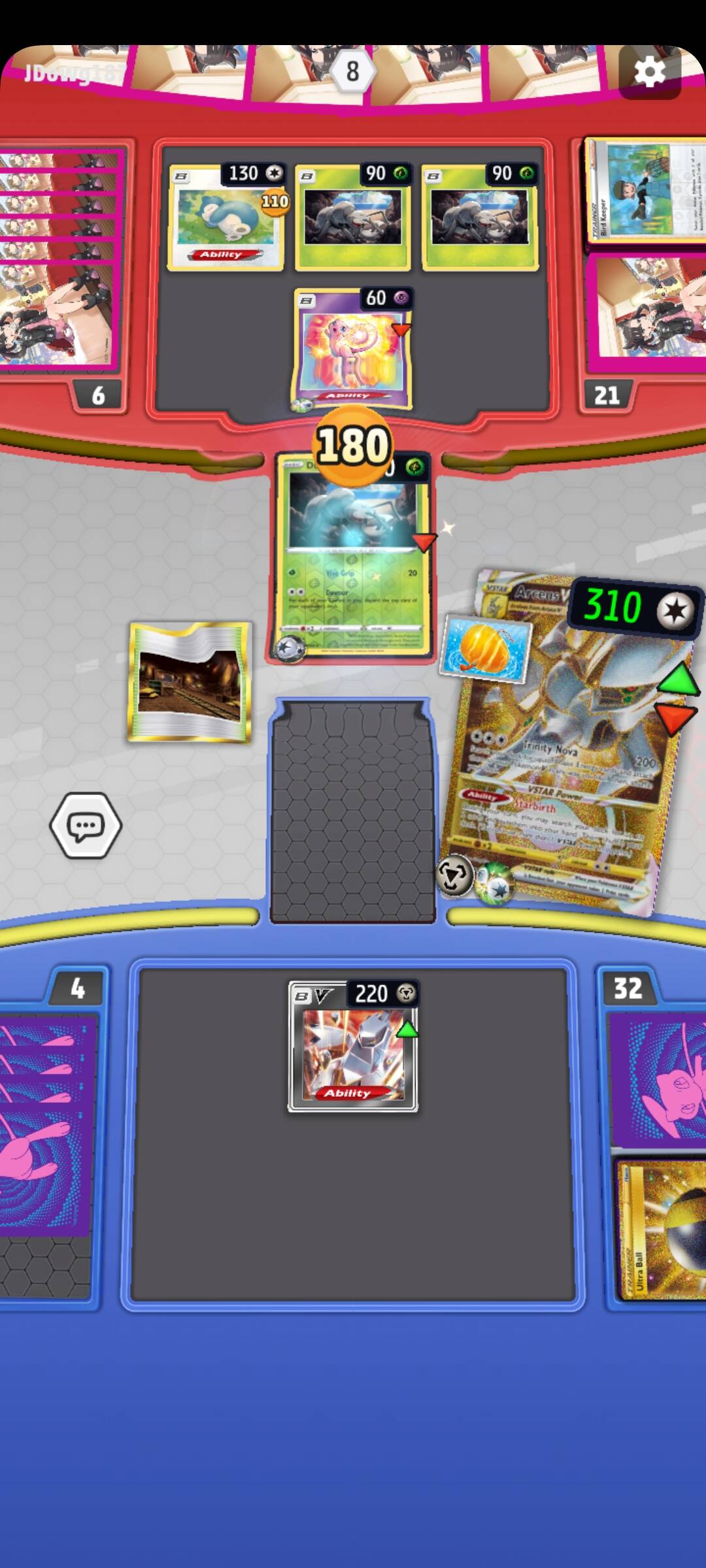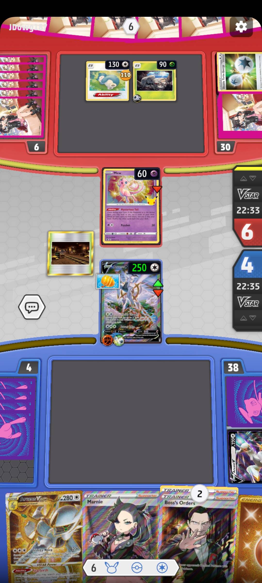 4、因为我们场上只有一个宝可梦,所以对手手牌的老大、硬币枪、甚至矿山都是废卡;