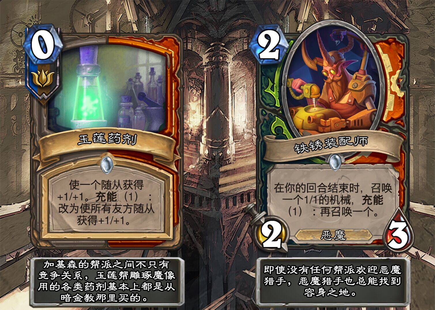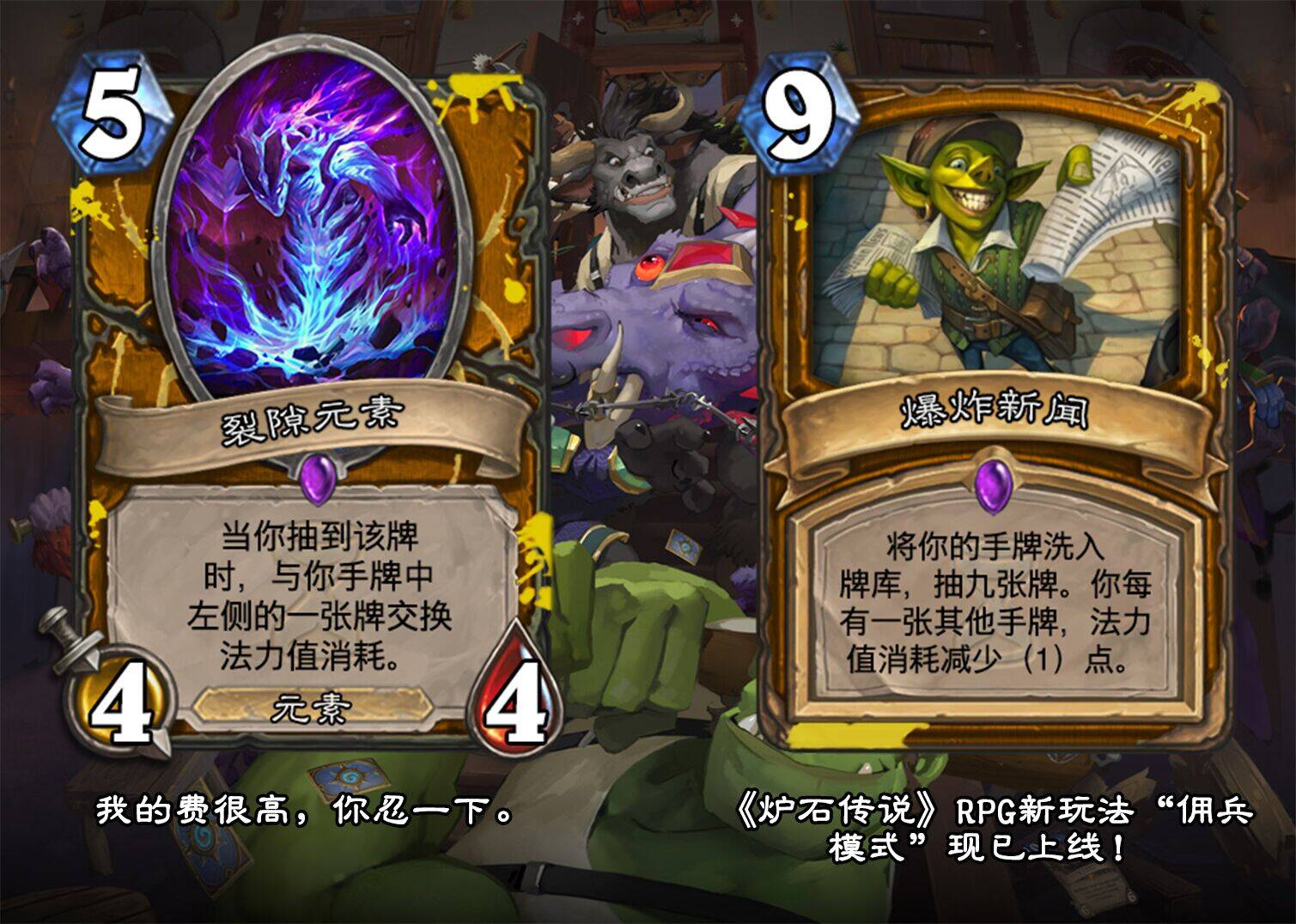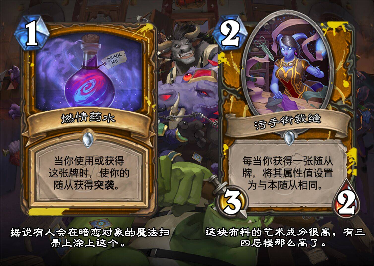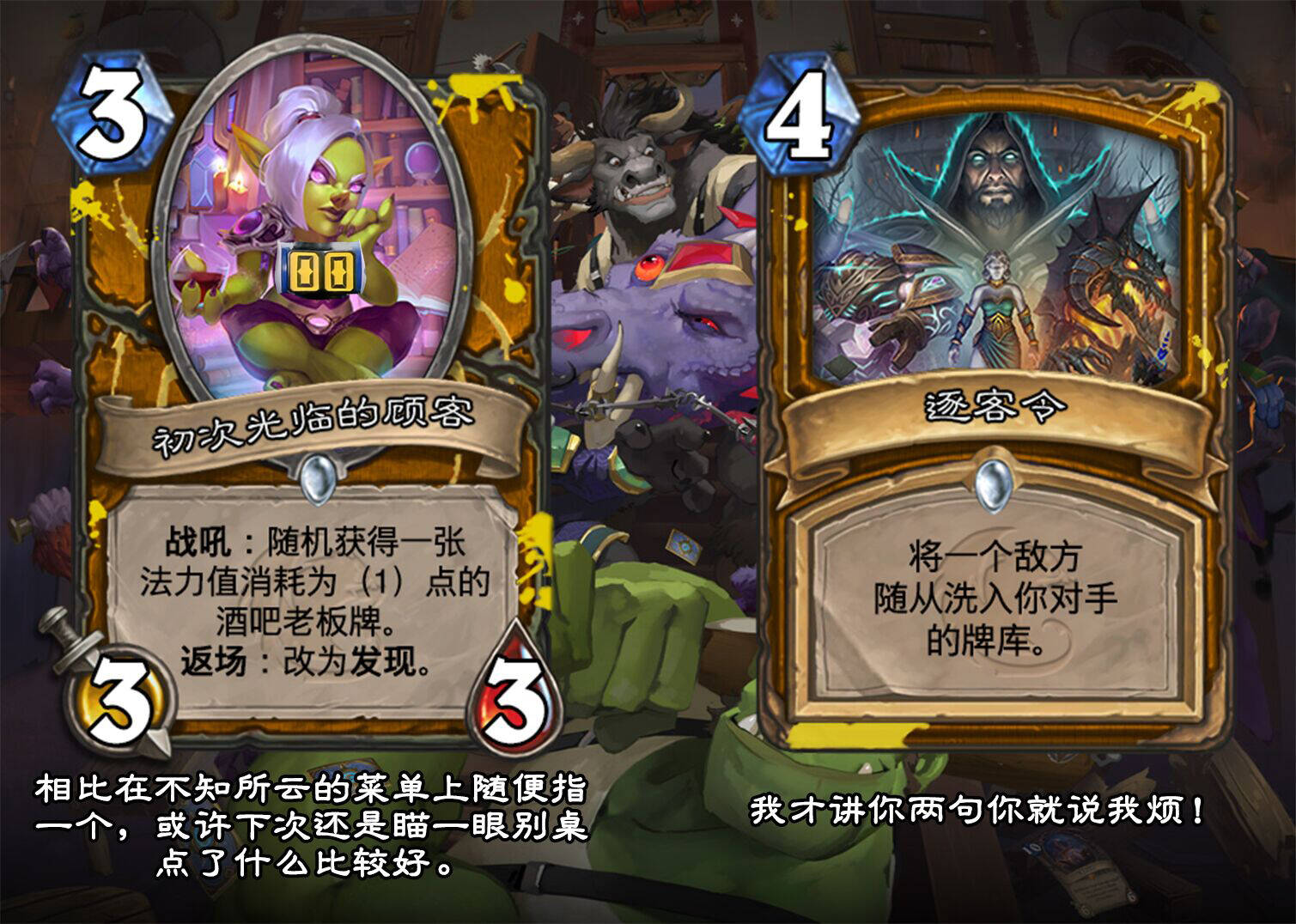 为了让新职业也能有足量的卡牌融入环境,新职业会采用独立迷你包的形式与狮鹫年的各个大拓展包平行同步上架。《酒馆逸话》与《贫瘠之地的试炼》平行,《回到未来》与《暴风城下的集结》平行,《重返加基森》与《奥特兰克的决裂》平行。当然,他们的故事性之间并无联系,而这三个拓展包也只能开出这四个新职业的牌,方便您快速入手这些卡牌。