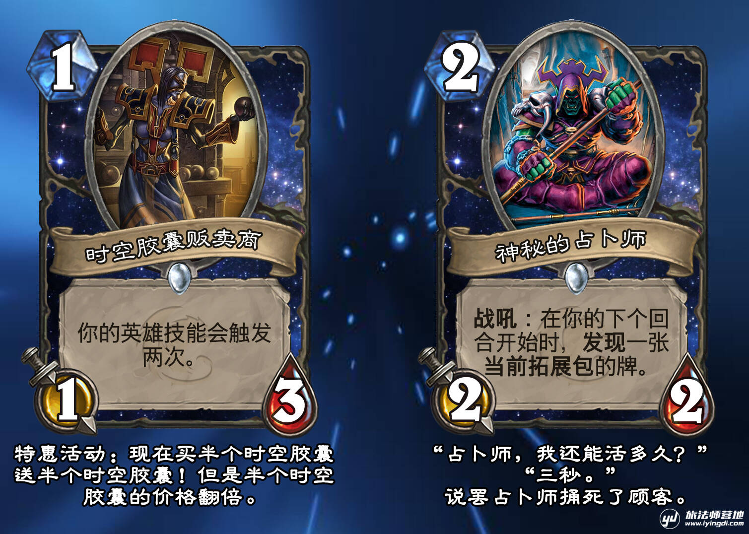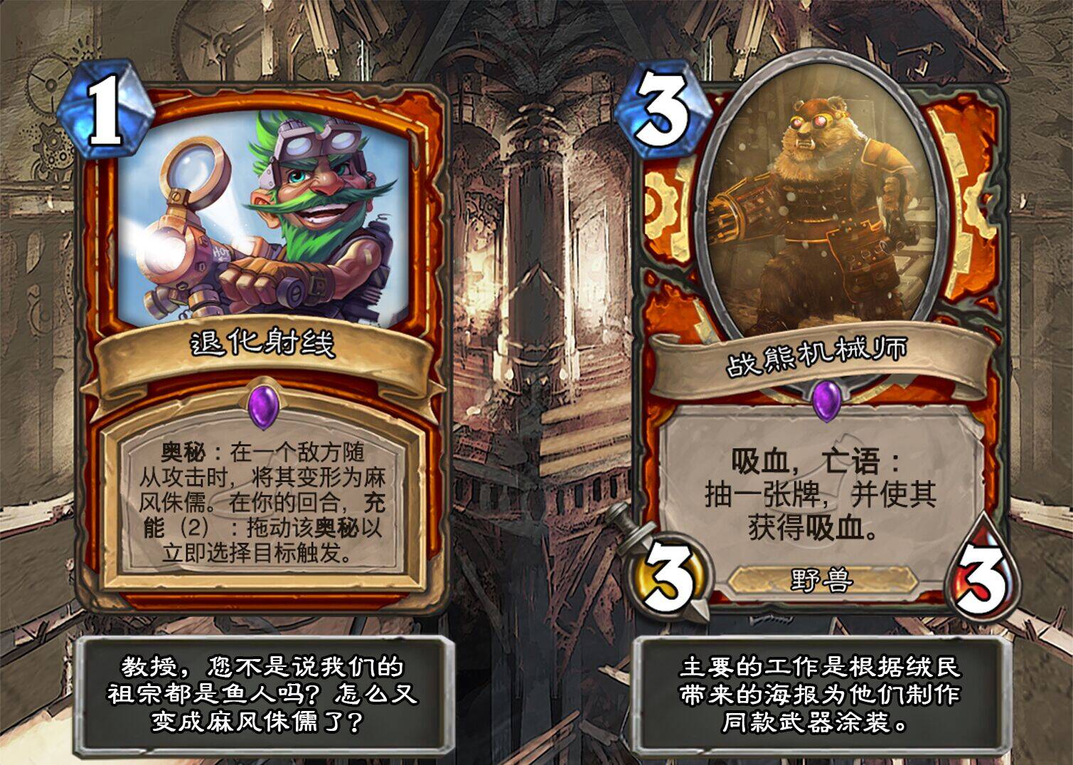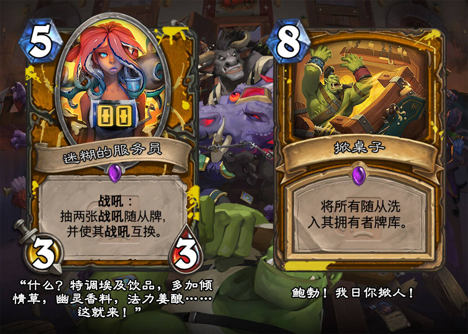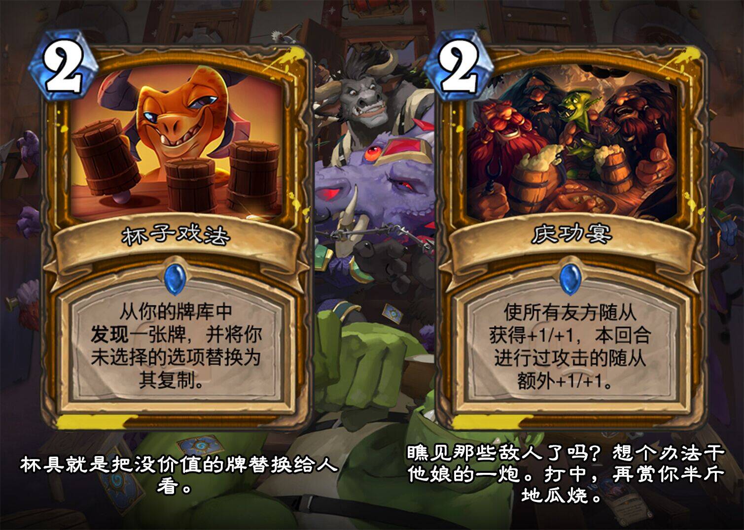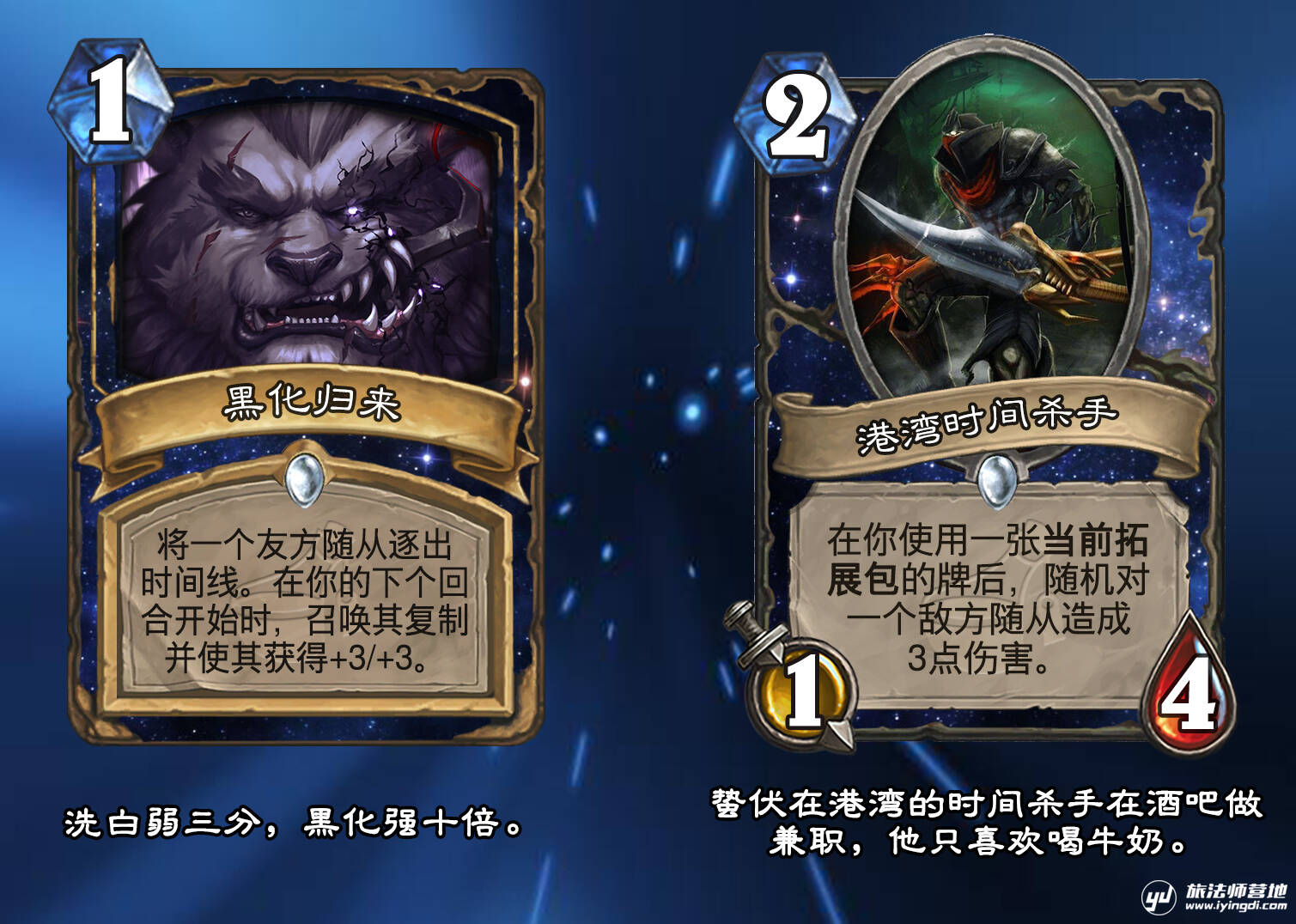 为了让新职业也能有足量的卡牌融入环境,新职业会采用独立迷你包的形式与狮鹫年的各个大拓展包平行同步上架。《酒馆逸话》与《贫瘠之地的试炼》平行,《回到未来》与《暴风城下的集结》平行,《重返加基森》与《奥特兰克的决裂》平行。当然,他们的故事性之间并无联系,而这三个拓展包也只能开出这四个新职业的牌,方便您快速入手这些卡牌。