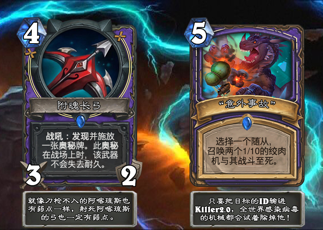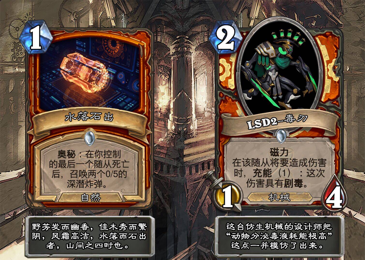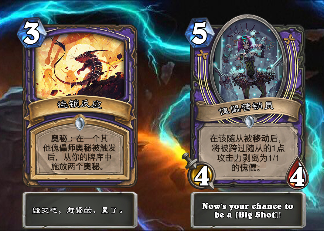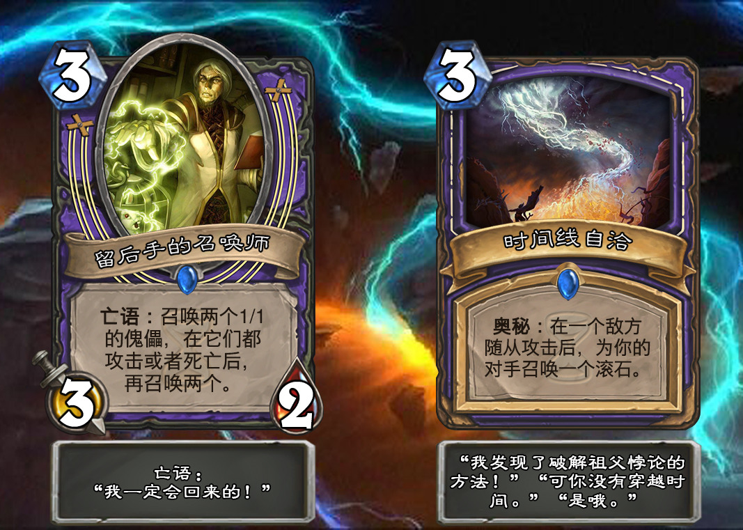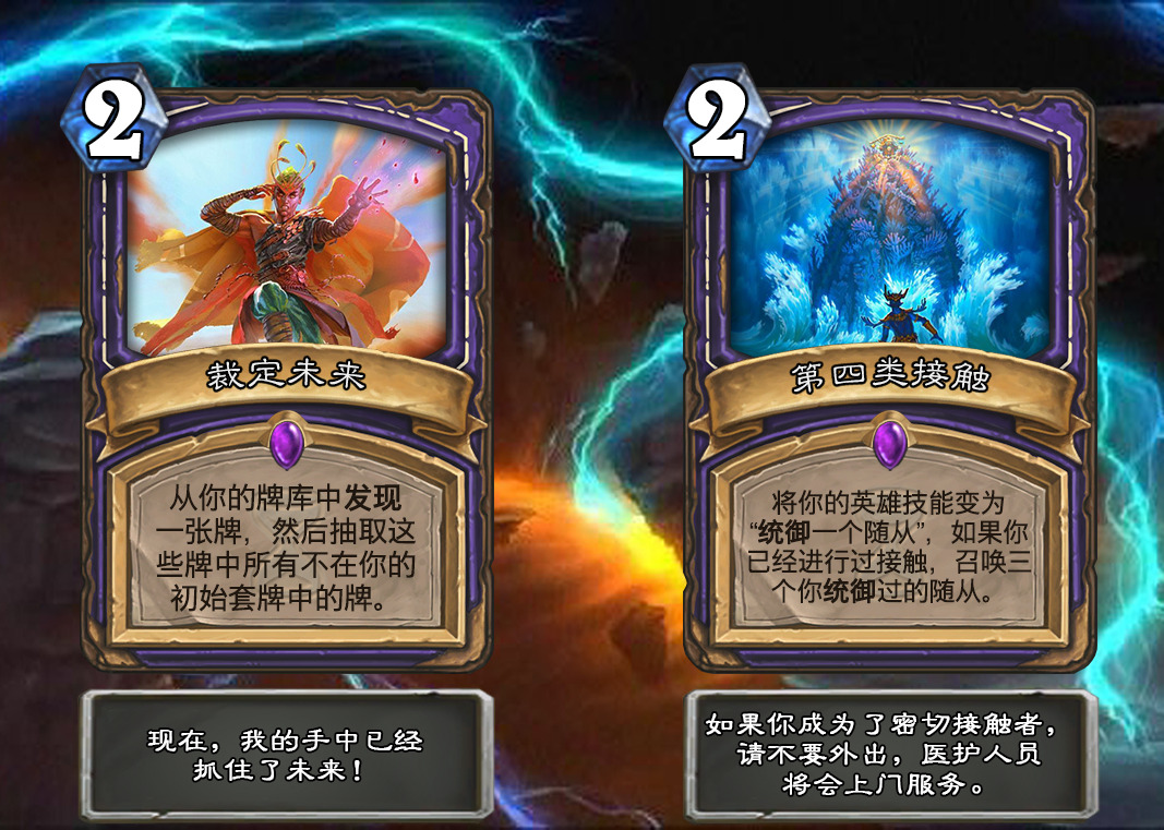 为了让新职业也能有足量的卡牌融入环境,新职业会采用独立迷你包的形式与狮鹫年的各个大拓展包平行同步上架。《酒馆逸话》与《贫瘠之地的试炼》平行,《回到未来》与《暴风城下的集结》平行,《重返加基森》与《奥特兰克的决裂》平行。当然,他们的故事性之间并无联系,而这三个拓展包也只能开出这四个新职业的牌,方便您快速入手这些卡牌。