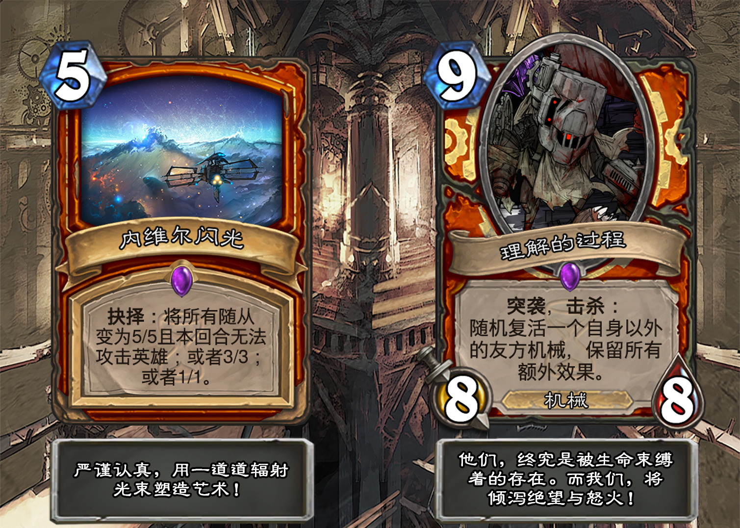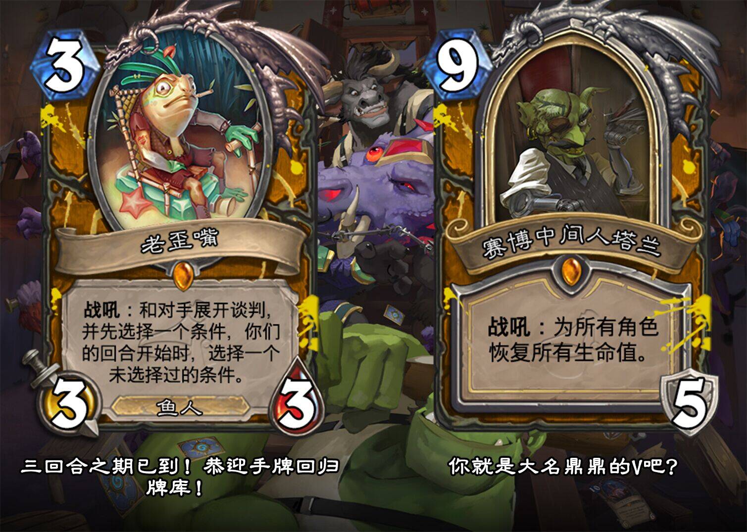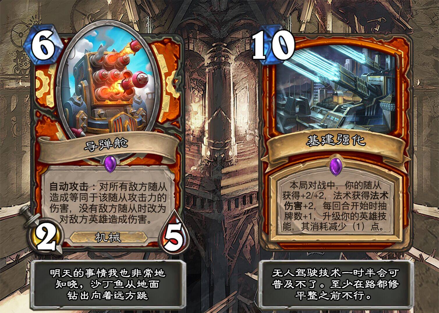 不过仍然因为时间问题导致其中很多部分也没有呈现,包括之前设计好的酒馆战棋英雄,因为卡牌的变动导致其中的角色不再,以及伙伴的推出,导致没有足够时间再去调整他们。以及卡组预购筑、佣兵战纪等部分也没有去呈现。