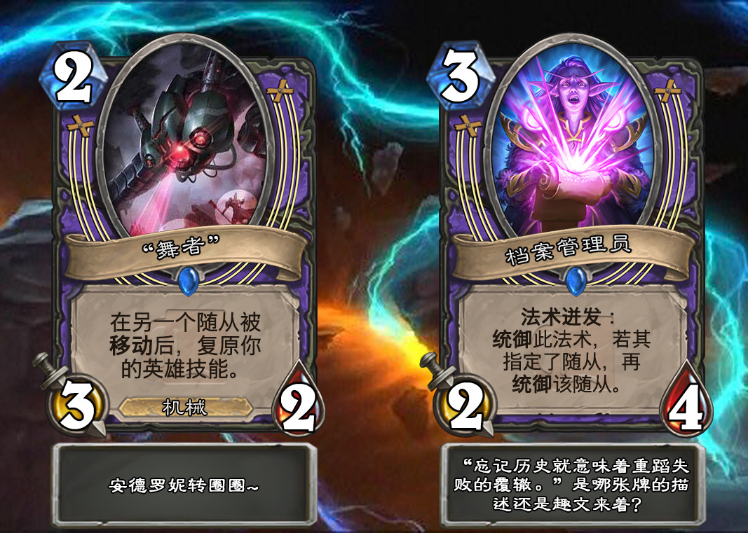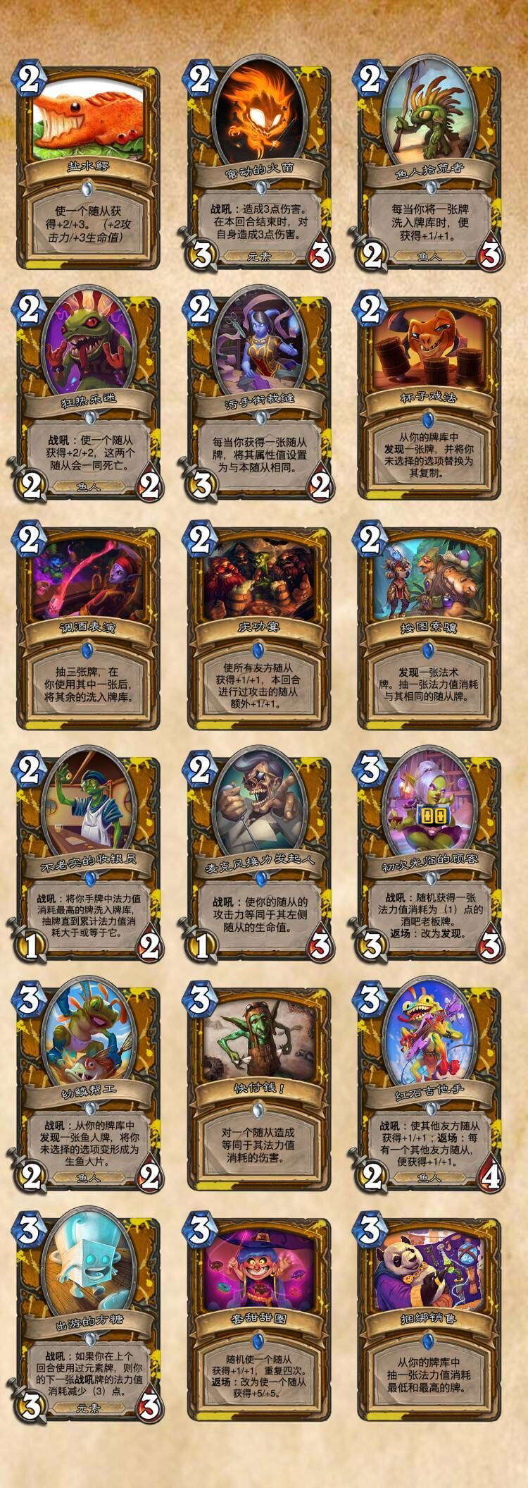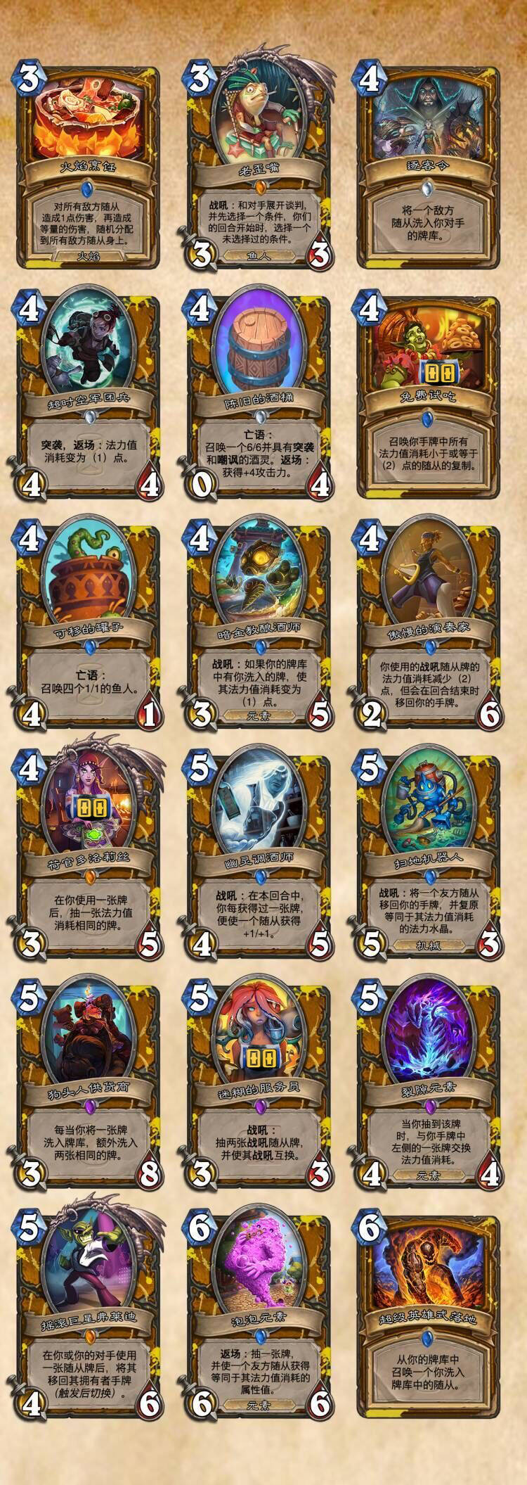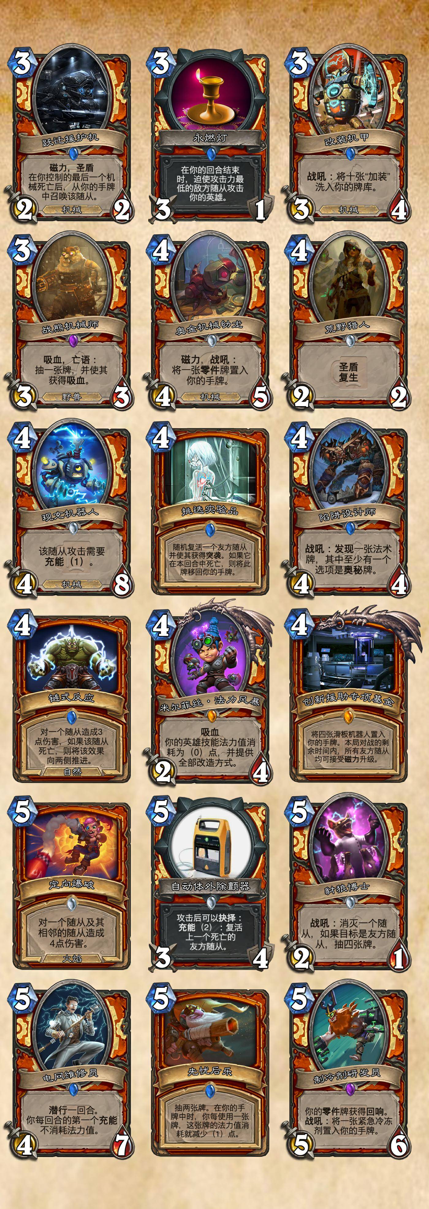 【特色】战场站位控制,大量复制随从与相关收益,摸牌相关花活,自动攻击,奥秘。
