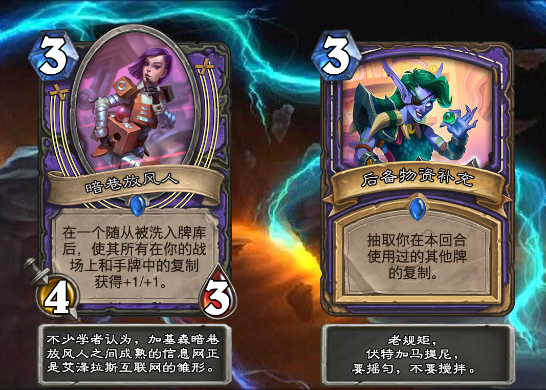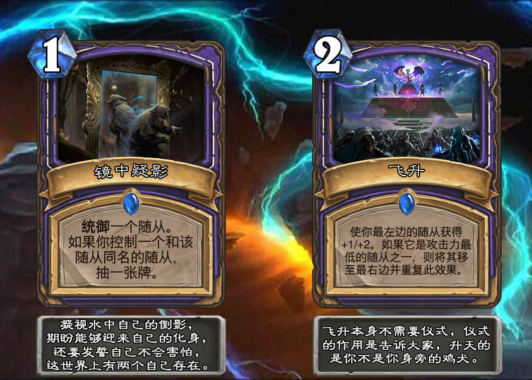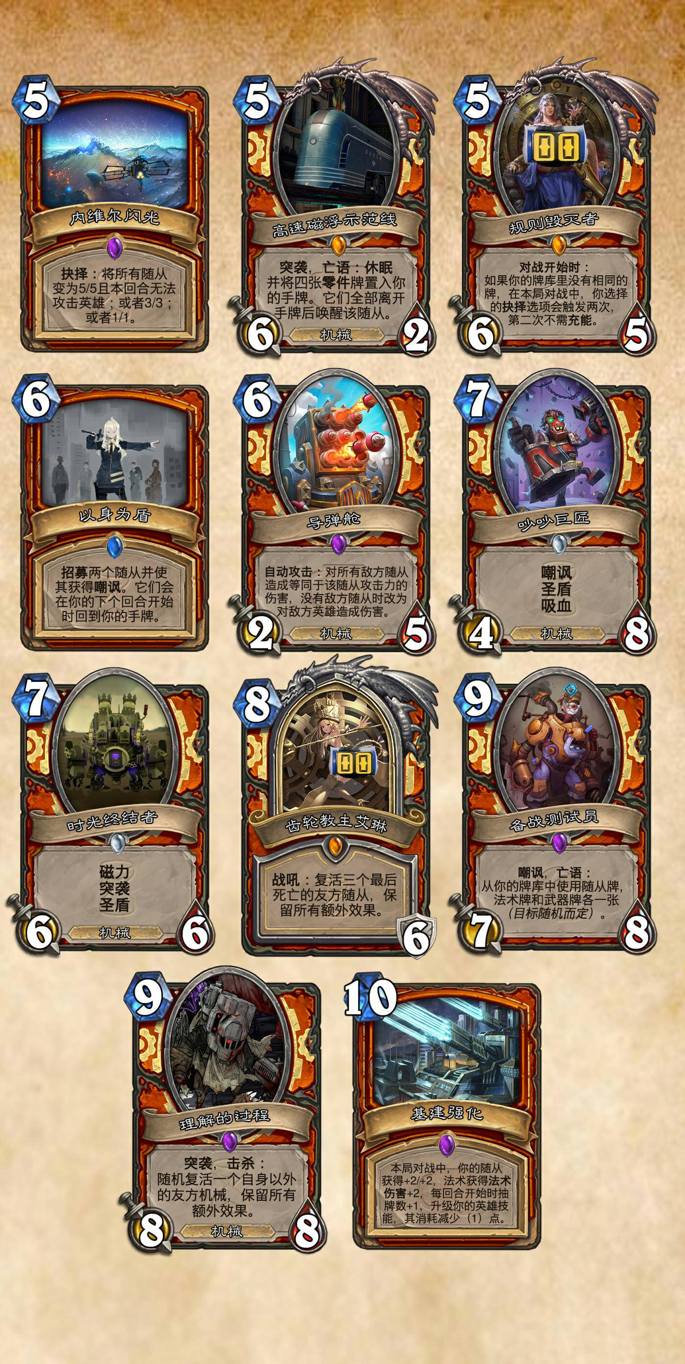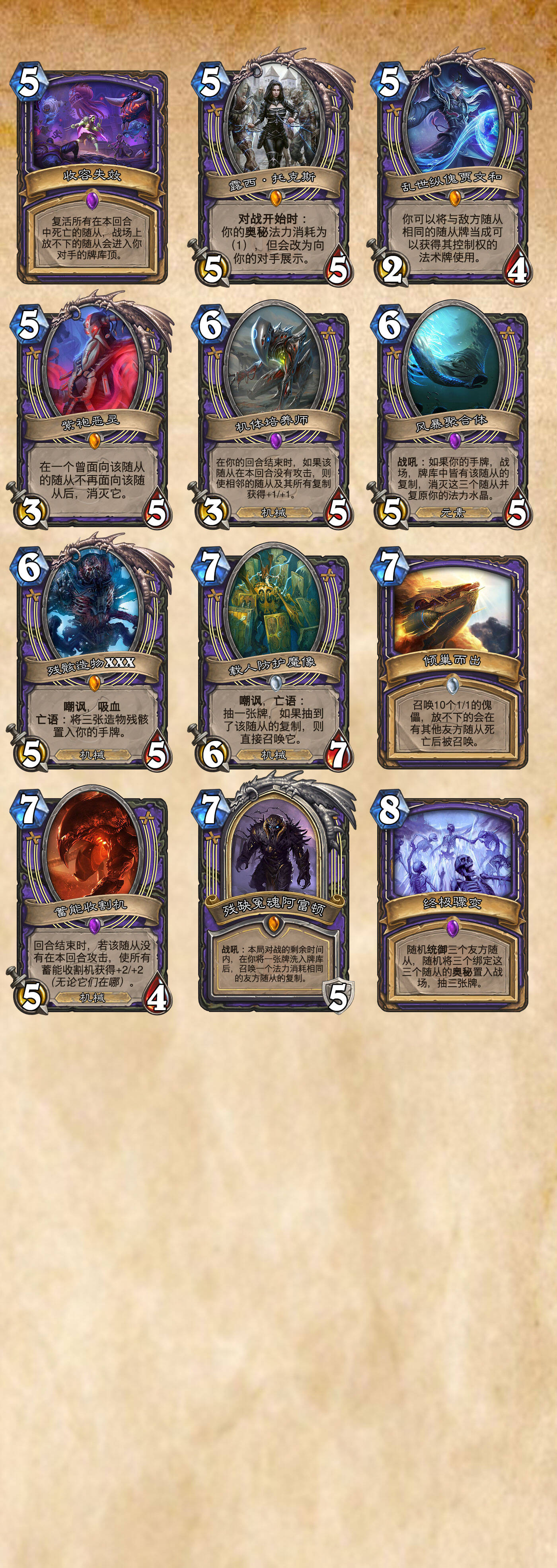 【特色】战场站位控制,大量复制随从与相关收益,摸牌相关花活,自动攻击,奥秘。