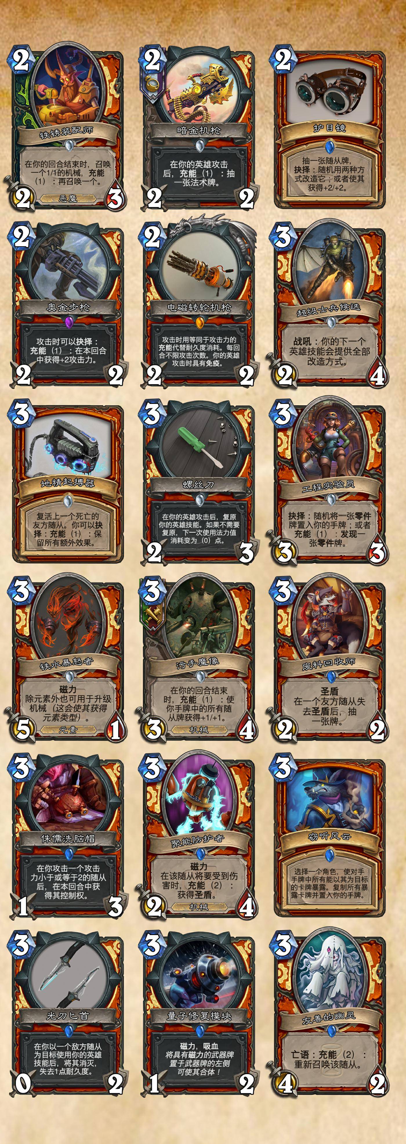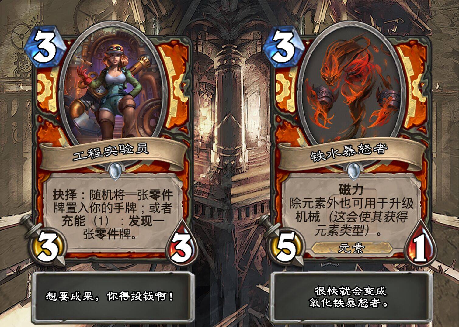 任何巨大的机械都是由一个个小小的零件组成的,而设计大型机械,用小零件组装正是工程师们的专长。工程师们会用灵活的卡牌奠定基础,逐渐获取优势稳固胜局!(当然你也可以购买巨大但笨重而不人性化的高费整机。)