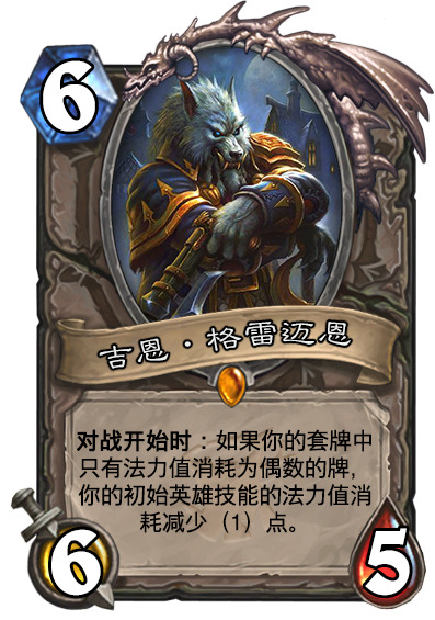 为了能够让英雄技能法力值消耗(1)的职业也能使用偶数卡组,对吉恩·格雷迈恩进行了调整。