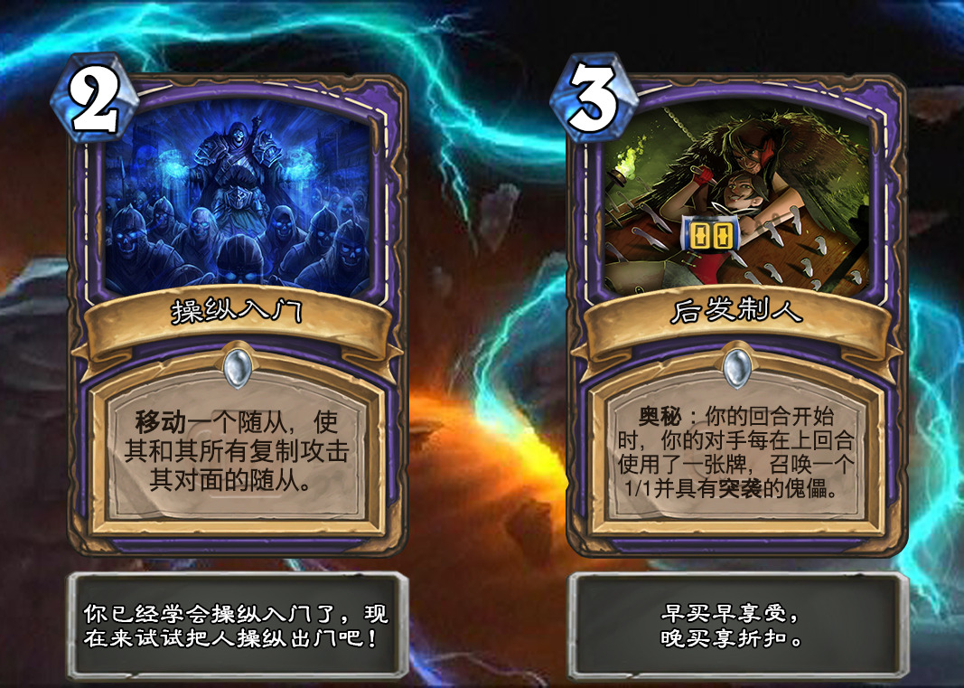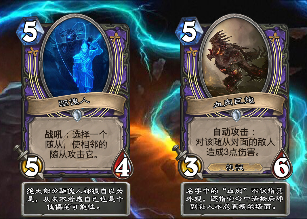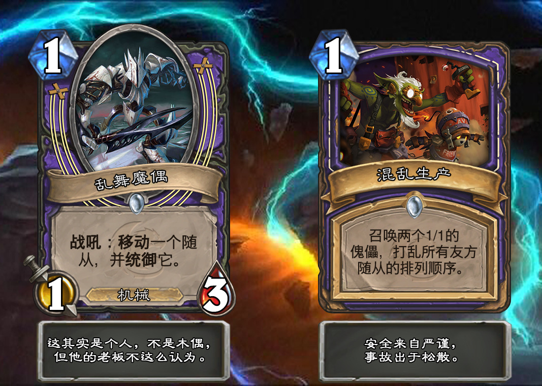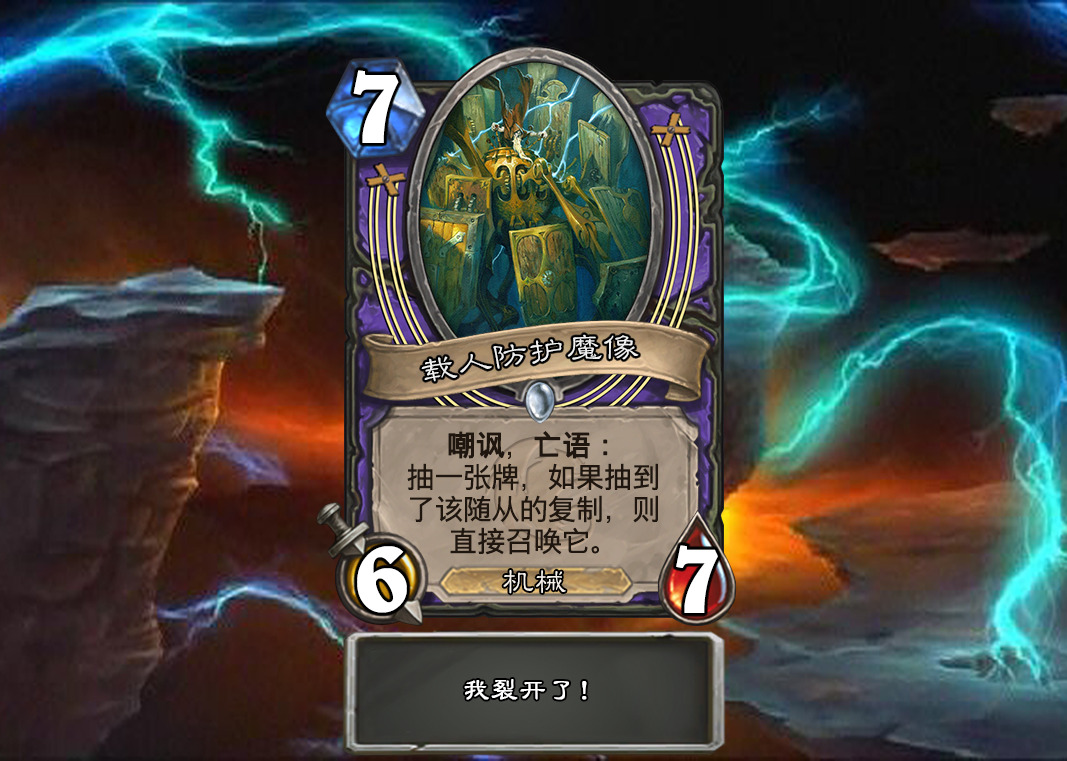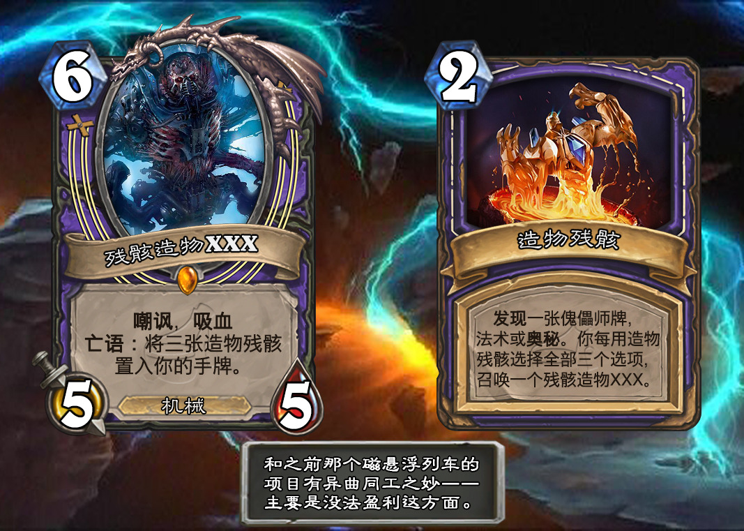 在你使用三张造物残骸分别选择获得傀儡师牌,法术或奥秘后,召唤一个XXX(三张造物残骸不一定需要源自同一个随从)。