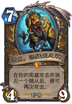 每回合可以攻击两次是叫做“风怒”,每回合可以攻击四次叫做“超级风怒”,如果你可以一回合攻击8次、16次、32次,甚至是百次,那要叫“玛什么里奥风怒”,而可以做到这一切的卡组就是,磕头德。在拉斯塔哈的大乱斗这个版本中,每个职业都会有一张传说神灵和与之对应的动物之灵卡,而且上线随机领取一个,我当时是猎人的山猫神灵,当然神灵之间有强有弱,有的进化之耻,有的不如(对应的)之灵,有的差强人意,也有的可为核心大用,而德鲁伊的迅猛龙神灵就是磕头德的大幕主角,它的效果:自己搜吧。