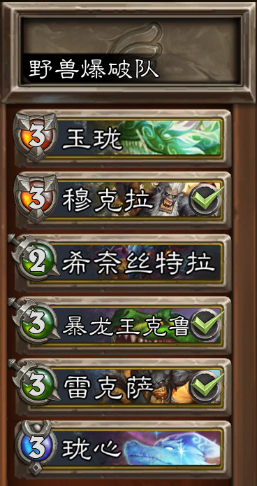 当前环境主流的就是巴瓦晨(及其变体)阵容,三龙阵容和吼瓦阵容。这套阵容则依靠螺丝(拉格纳罗斯)的被动和巴琳达召唤物的挡刀,对晨拥和瓦有明显的克制作用,对于三龙这类输出不高的阵容也能打出不俗的伤害——我之前拿过类似的阵容给炉石传说酒馆进行过社区推荐,得到了比较好的反馈,进行了单卡的替换改进,大家也可以试一试这套改进后的火龙卡组。