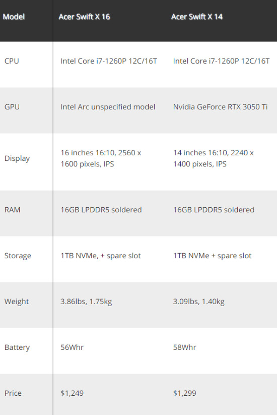 价格方面,Swift X16在配备更大屏幕(16寸2560×1600对比14寸2240×1400)、其他配置基本相同的情况下,价格还便宜了50美元。