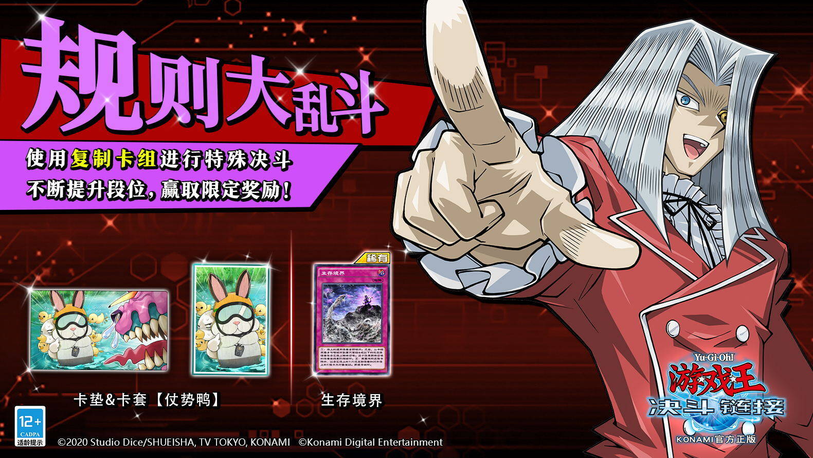 通过挑战决斗世界里『心灵迷宫』、『怪物之门』或『复制决斗嘉年华』活动中的怪兽NPC,来复制他们的卡组、角色形象甚至其专属技能来参加本期的规则大乱斗!