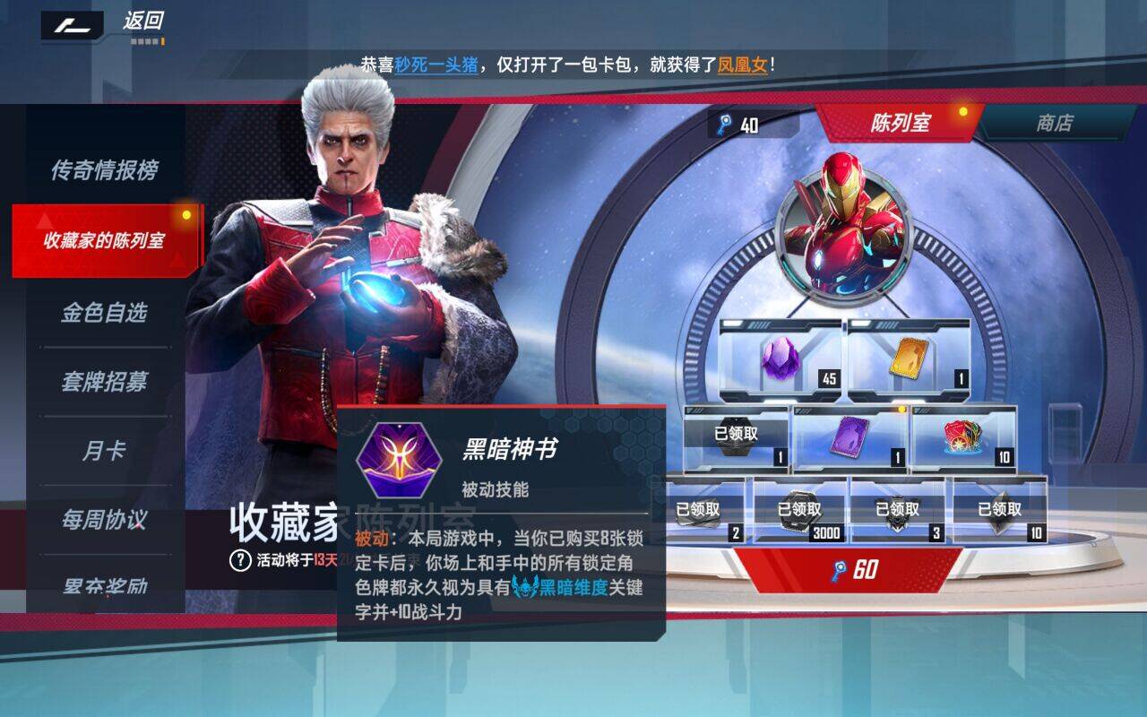最新加入的收藏家的陈列室,这里有两个东西最值得兑换,一个当然就是人见人爱的酷炫钢铁侠皮肤:万能装甲: