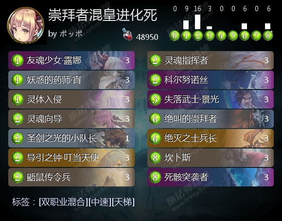 混皇进化死是围绕进化、协作体系运作的中速思路,主要通过失落武士·景光和死骸突袭者取胜。