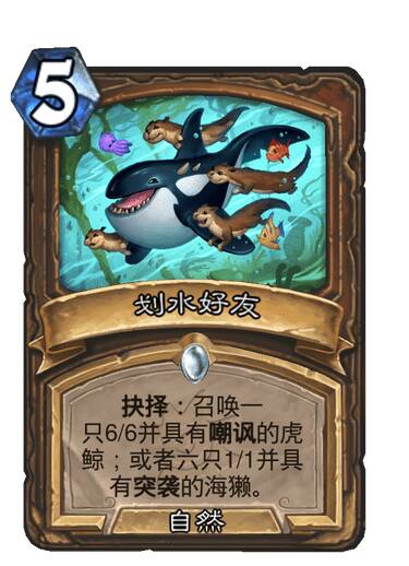 抉择:召唤一只6/6并具有嘲讽的虎鲸;或召唤六只1/1并具有突袭的海獭。