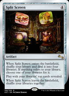 这张牌把你的牌库分成四堆,所以插画也展示了 S.N.E.A.K. 探员正在观看着萤幕。一个萤幕是被咬过的樱桃派,一个是鬼怪的库房,有着炸弹的洞而非弦月。一个是应该要正看着萤幕的探员正在睡觉,最后一个是细微内容之死,作为这张插图自我引用的笑话。