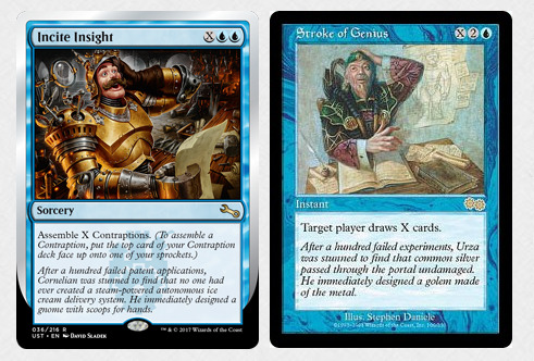 Incite Insight 裡组装 X 个机巧的效果显然是对照了克撒传裡 Stroke of Genius 的抓 X 张牌。