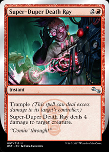 Super-Duper Death Ray 有践踏异能,所以在插画裡它就只是一直向前,穿越目标、穿越囉囉,再穿越牆壁。