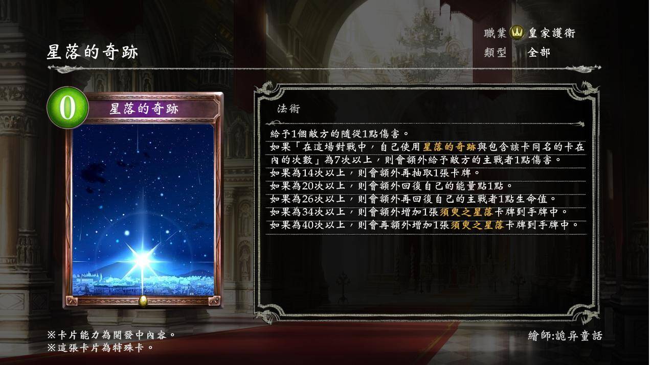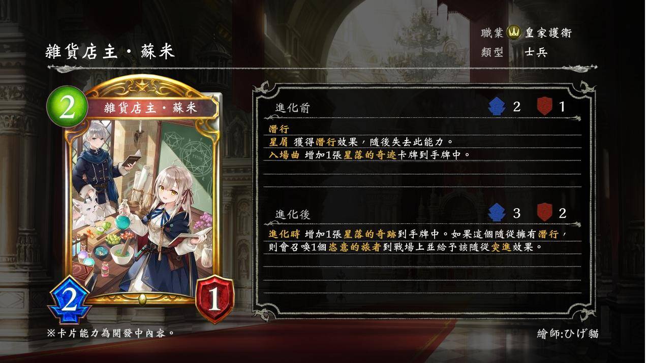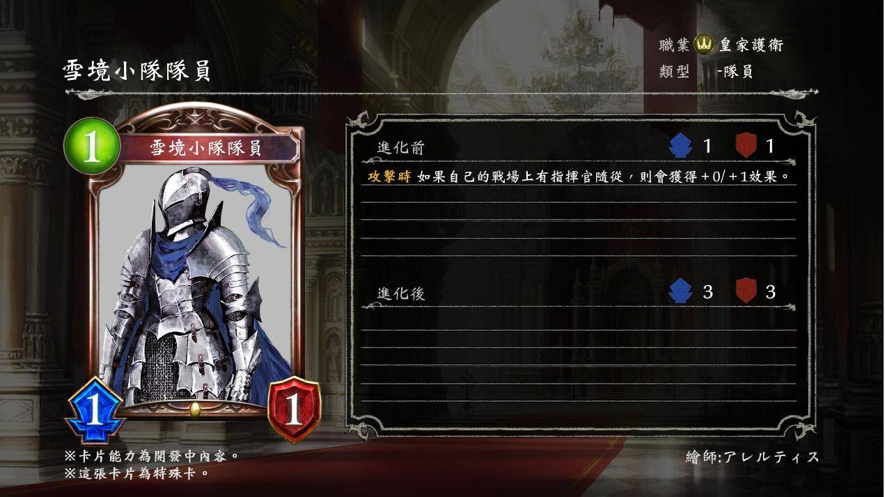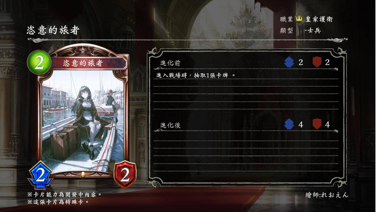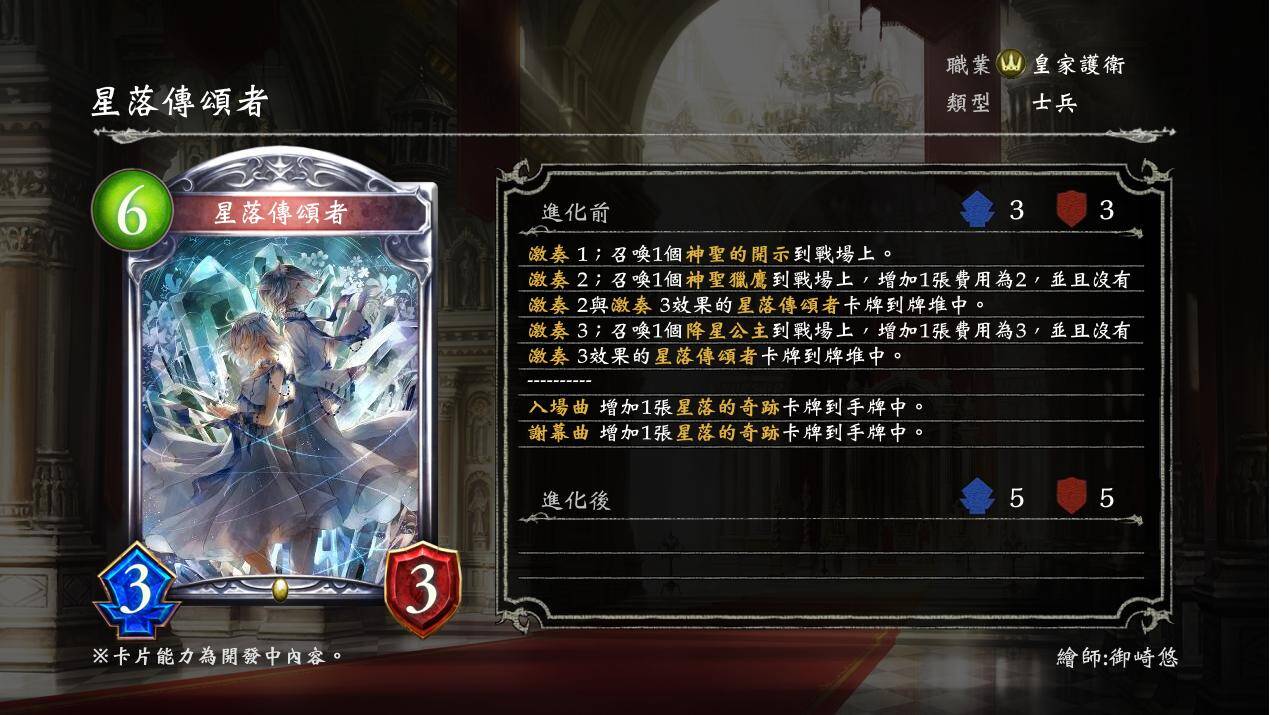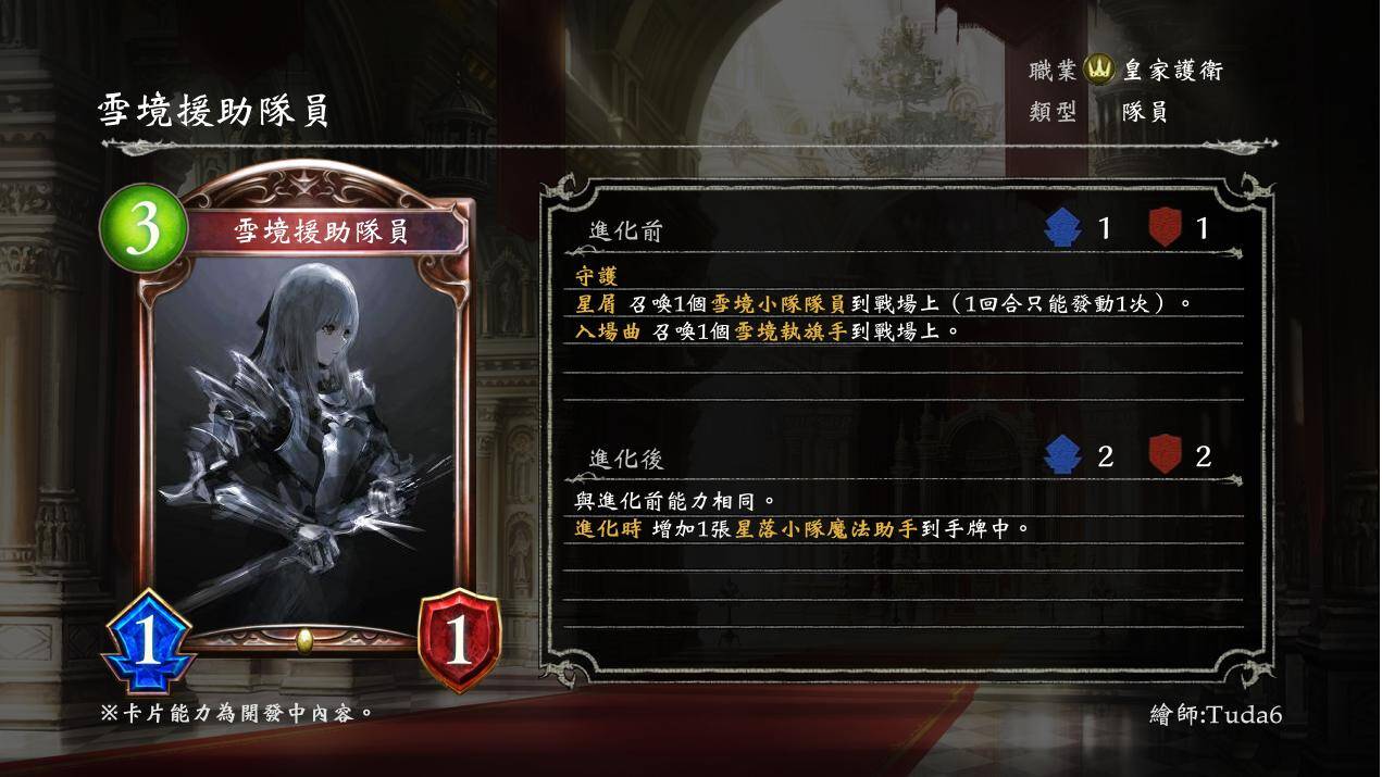 我在diy卡牌的时候有人跟我说这卡像法师而不像皇家,这个确实,就连这个 星屑 效果都类似于魔力增幅,但皇家确实需要全新的效果去为皇家打下良好的底子,不然一直是铺场抢脸刷进化,除非出那种特别超模的单卡,不然皇家几乎都不会在t1久呆,因为卡很容易被针对。(当然我这个关键词设计的并不是特别的好)尽管我认为原始的官兵配合是一个很好的正面收益,但是在现在这个环境中,手牌确实不太够用,场上也经常留不住人的情况完全不太适合官兵配合,收益不敢太超模。不过说了这么多,该坐牢还得坐。