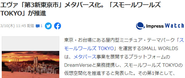 日本元宇宙企业平台DreamVerse日前宣布,将联动EVA推出EVA主题元宇宙,首弹作品就是将作品中第3新东京虚拟空间化,一起来了解下。
