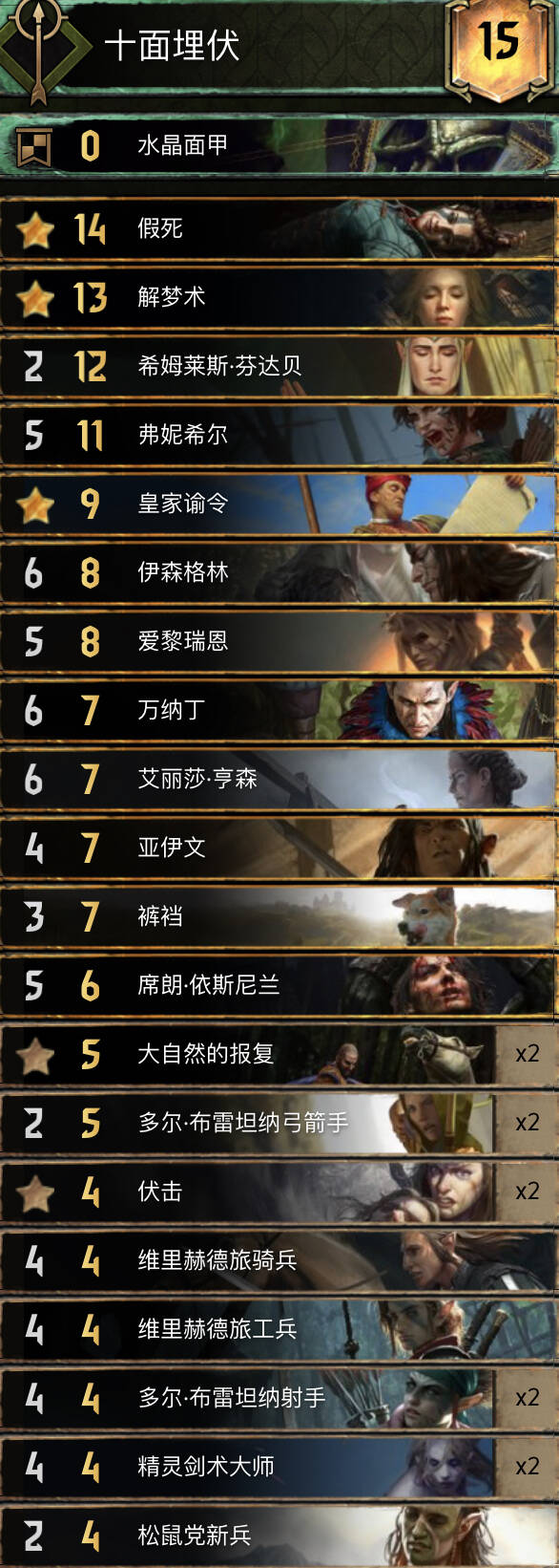 新版本加强了一堆卡都没有伏击加强的实在,不搞花里胡哨岳父打4~5张伏击点数就很够了,这套松鼠打需要战场引擎的卡组大优(说的就是你,北方),零零碎碎的伤害可以确保对面一张引擎都站不住。