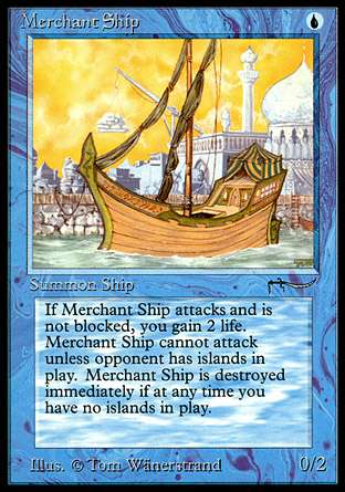 (船,如果~进攻且未被阻挡,你获得2点生命。除非对手操控海岛,否则~不能进行攻击。若你未操控海岛,牺牲~。)