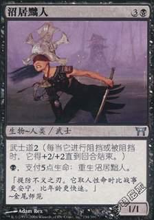为什么烂? 这些生物在战斗外都是1/1的脆皮。沼居黜人能变成3/3,但是重生却需要你支付5点生命!武野军骑兵可以伤害到生物,但只能针对进攻或阻挡的精怪...这两张牌的异能和费用都是在难以匹配。