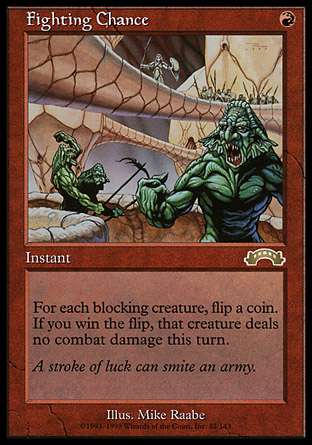 (瞬间,对于每个阻挡的生物而言,掷一枚硬币。如果你赢得此掷,该生物本回合不造成战斗伤害)