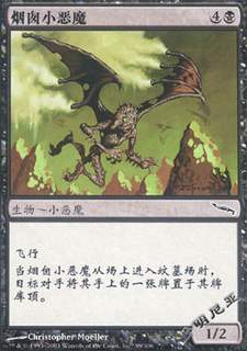 为什么烂?不少人都认为烟囱小恶魔是史上最烂身材的生物。不过这并不是重点!它的身材确实足够差,但它在死掉的时候还是(大多数情况下)能给你带来卡牌优势。所以让我们承认这牌确实足够烂到能上榜,不过还有更烂的生物等着我们。