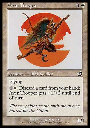 (生物——鸟/士兵 飞行,3w,弃一张牌:~得+1/+2直到回合结束)
