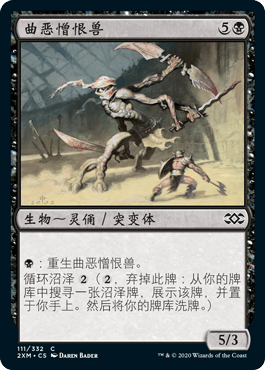 为什么烂? 衰败泥壤在你达到门槛之前没有任何作用,反而会慢慢吃掉坟场里的牌。如果你能很快填坟,这个效应还是不错的,但现在能够清理坟场的牌越来越多,你可能很难有机会一边保持门槛一边捞生物回手。