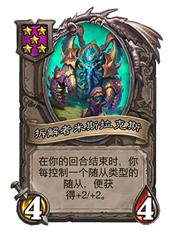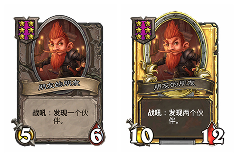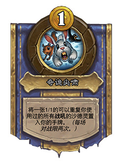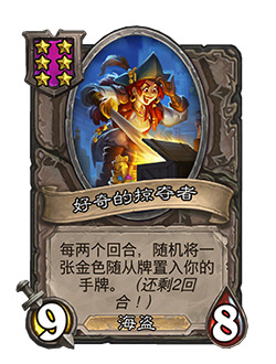 - 4星伙伴,4/3,战吼:随机将等级1,3和5的各一张随从牌置入你的手牌。
