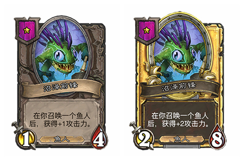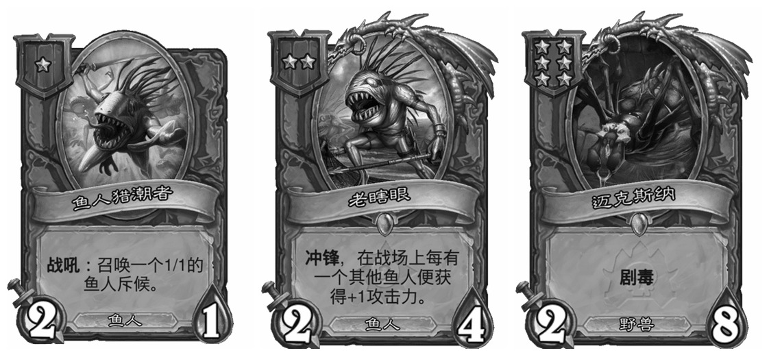 - 1星1/4鱼人,在你召唤一个鱼人后,获得+1攻击力。
