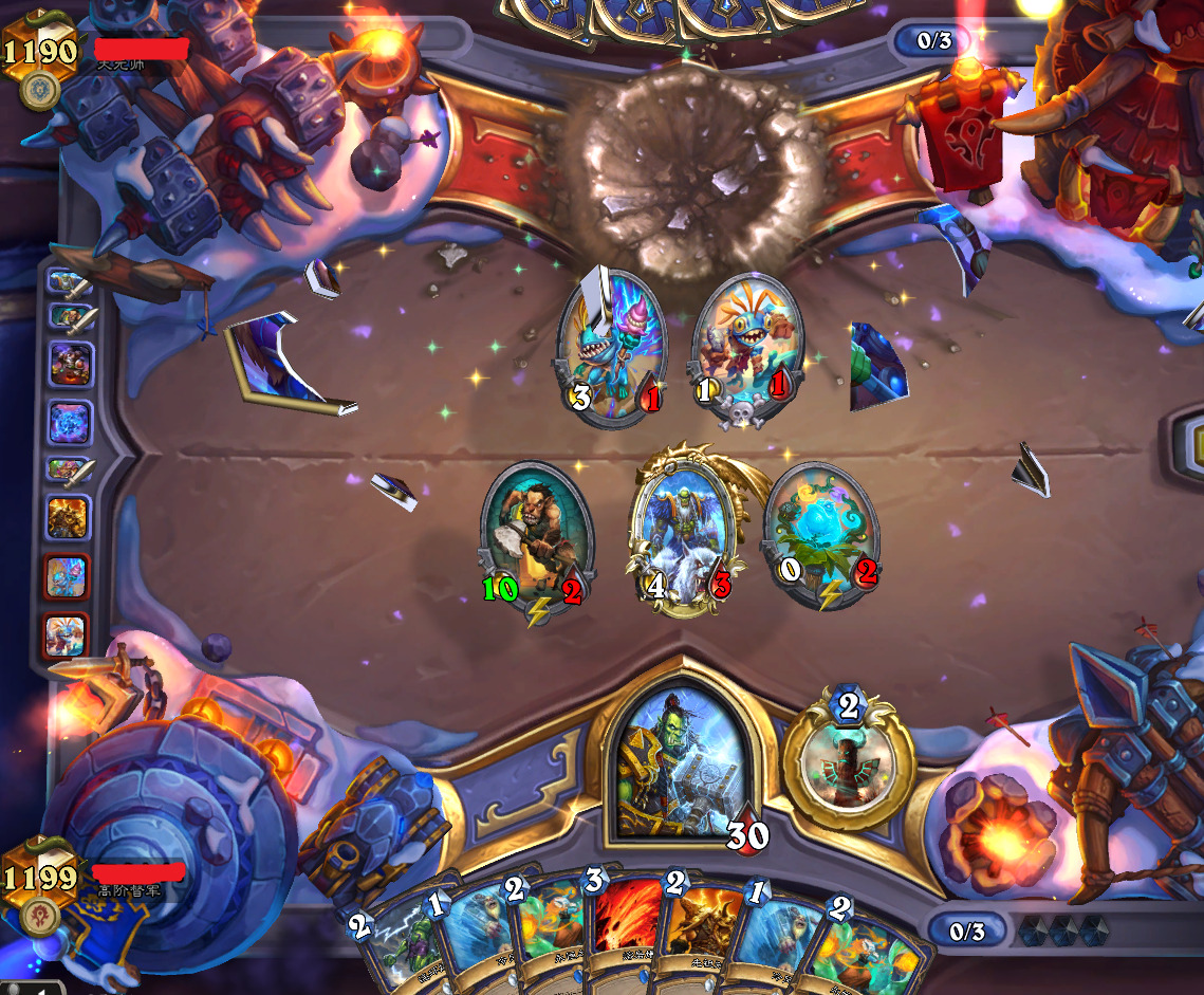 火冲法:大劣,定向找法术,三冰箱太无解,甚至还带衰变飞弹,裸拍蛙灵都算赌。如能确认对面是火冲,留穴居人>武器>直伤>蛙,武器只要3攻就砍脸,防对面技能冻脸,每回合抢血不解场,全力破冰抢回合数(对鬼灵贼也是类似打法)。